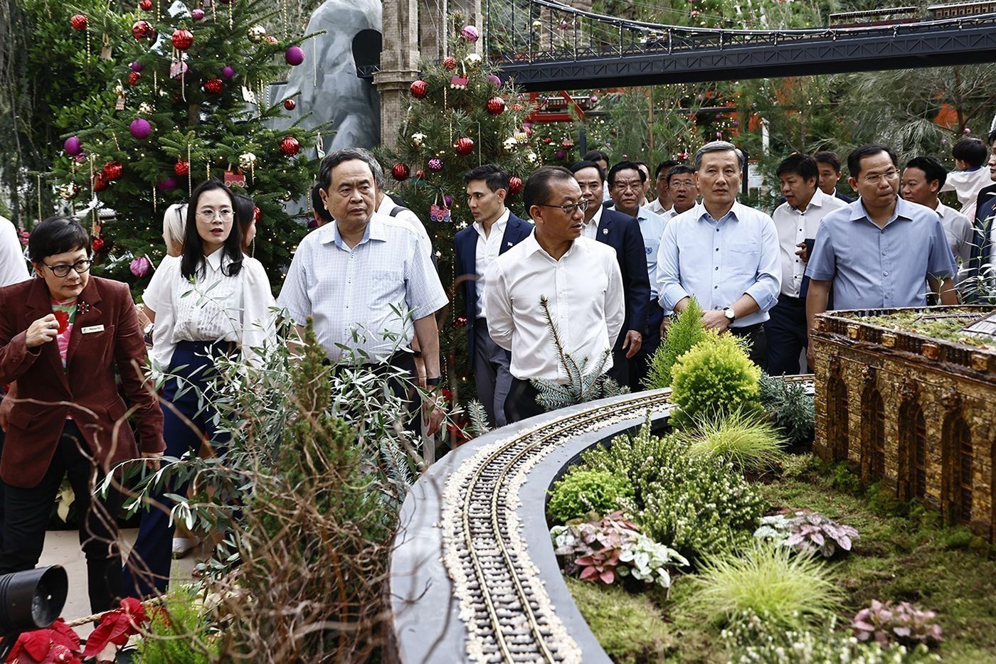Chủ tịch Quốc hội Trần Thanh Mẫn và Phu nhân cùng Chủ tịch Quốc hội Singapore Seah Kian Peng và Phu nhân thăm công viên thiên nhiên Gardens By The Bay. (Ảnh: TTXVN)