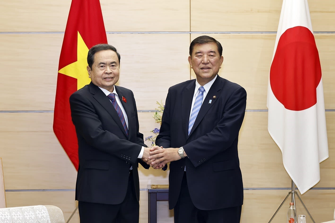 Chủ tịch Quốc hội Trần Thanh Mẫn hội kiến Thủ tướng Nhật Bản Ishiba Shigeru. (Ảnh: TTXVN)