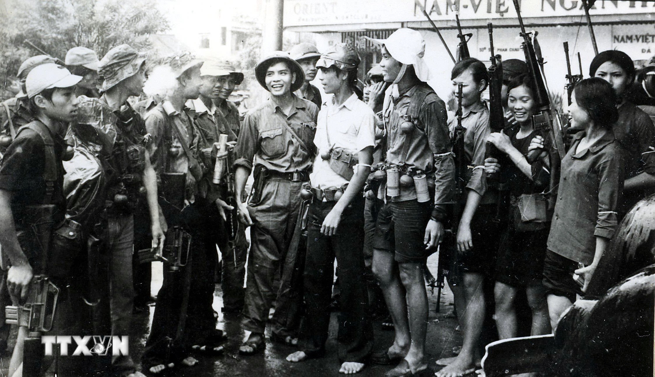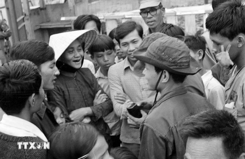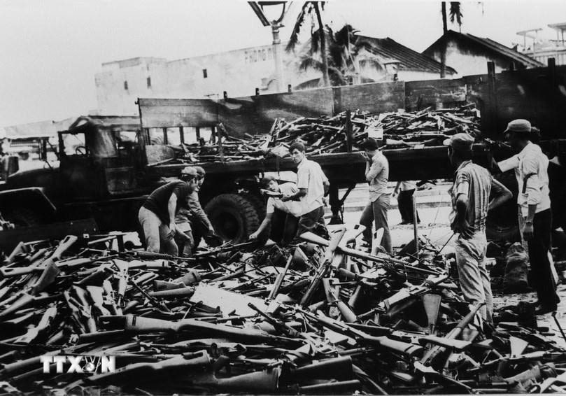 Tự vệ thành phố Đà Nẵng phối hợp với quân giải phóng giữ gìn trật tự đường phố sau ngày giải phóng.