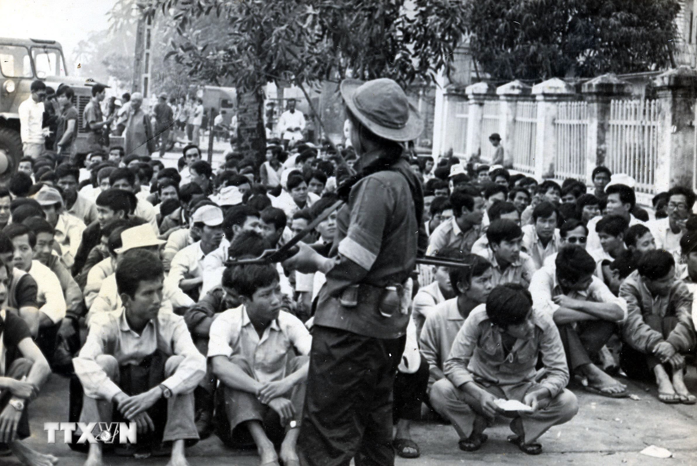 Binh lính ngụy quân Sài Gòn ra trình diện chính quyền cách mạng thành phố Đà Nẵng.