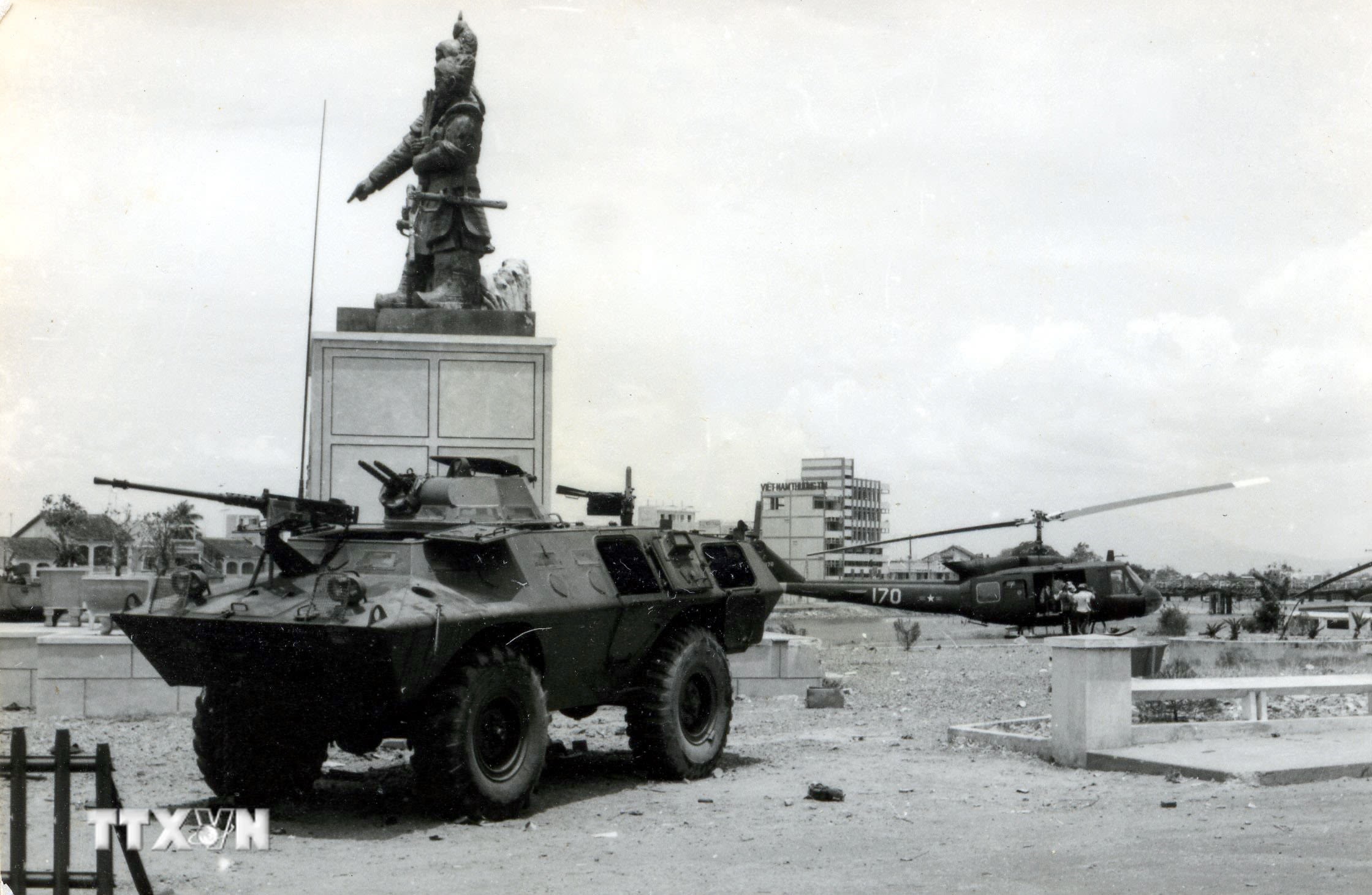 Xe quân sự và vũ khí của ngụy quân Sài Gòn trên dường phố Đà Nẵng sau giải phóng.