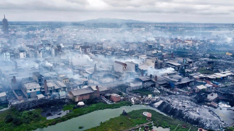 Nhiều cơ sở đúc nhôm tại xã Văn Môn (Yên Phong, Bắc Ninh) xả xỉ thải, khí thải không qua xử lý, gây ô nhiễm môi trường nghiêm trọng. Ảnh: THÁI PHAN