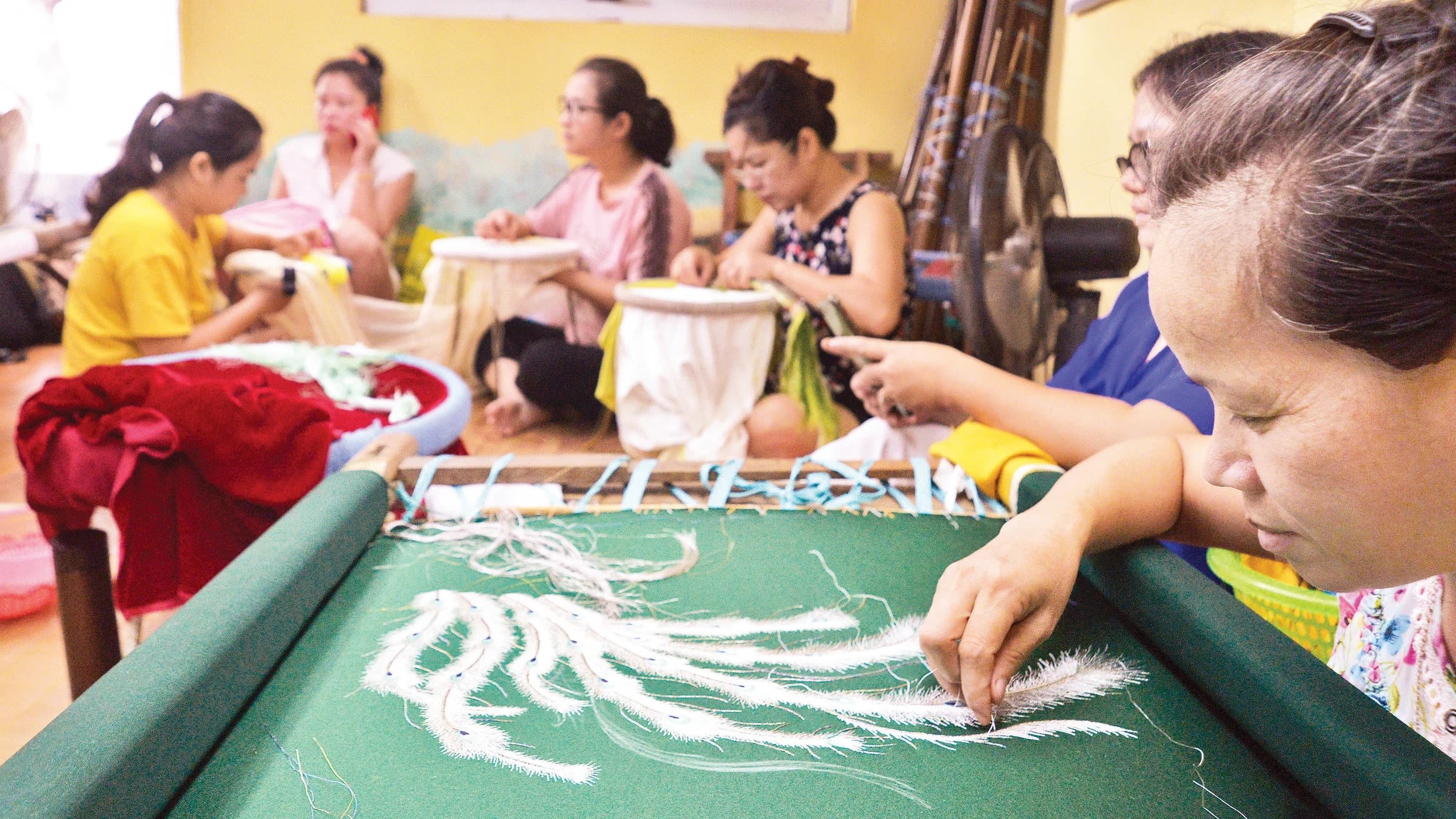 Các sản phẩm thêu của làng thêu Quất Động. Ảnh: TRẦN HẢI