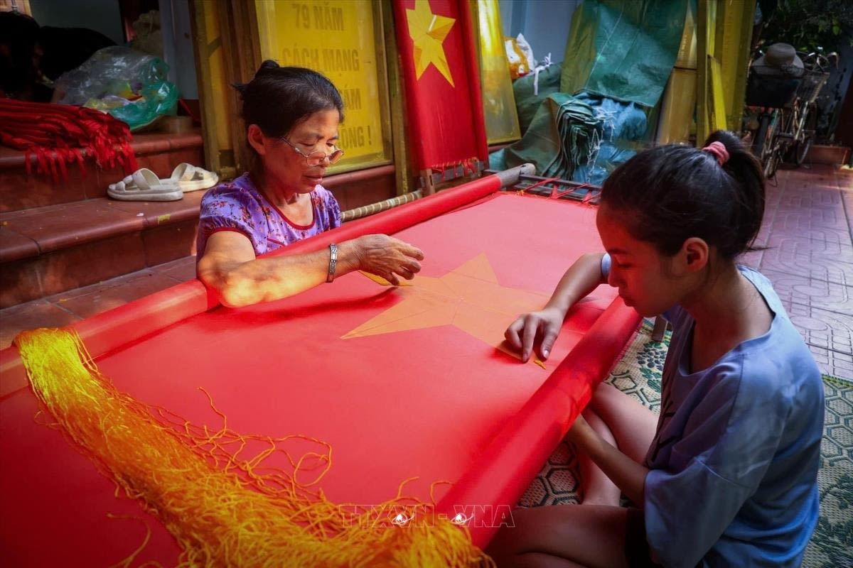 Từ Vân - làng nghề may cờ Tổ quốc. Ảnh: TTXVN