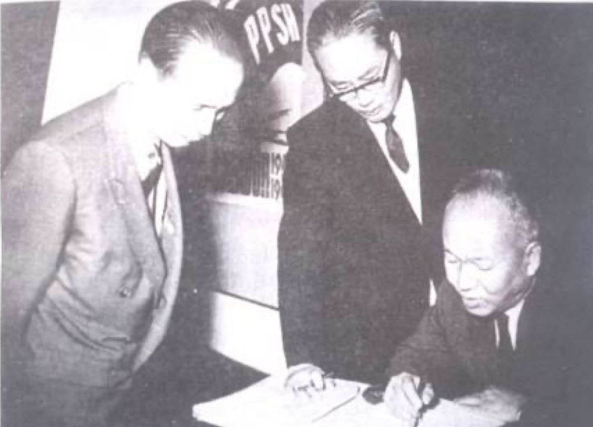 Giáo sư Hồ Đắc Di, Giáo sư Tôn Thất Tùng và Bộ trưởng Y tế Phạm Ngọc Thạch sau ngày Hà Nội giải phóng. (Ảnh tư liệu)