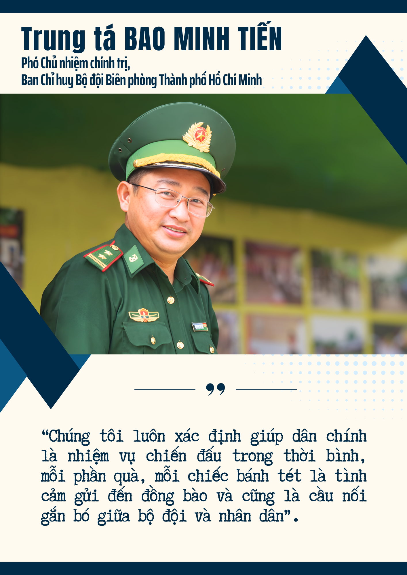 Bằng bản lĩnh, trí tuệ và tinh thần “dựa vào dân-vì dân”, Bộ đội Biên phòng Thành phố Hồ Chí Minh đang từng bước xây dựng mô hình biên phòng hiện đại, chủ động phòng thủ từ sớm, từ xa, quản lý chặt chẽ các hoạt động trên tuyến biển của Thành phố, giữ vững an ninh chính trị, trật tự an toàn xã hội, bảo đảm sự thông suốt của dòng chảy thương mại, đóng góp quan trọng vào sự phát triển bền vững của Thành phố mang tên Bác.