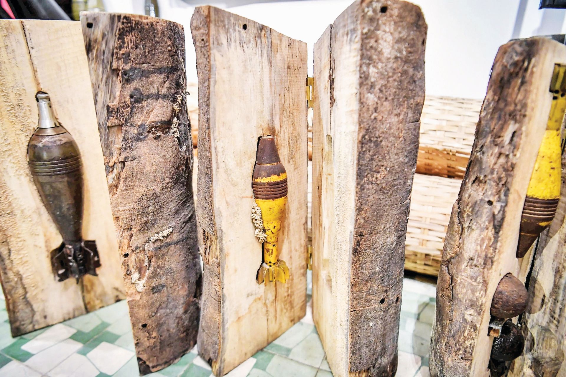 Những khúc gỗ đục rỗng ngụy trang để chứa vũ khí vận chuyển trong nội thành để phục vụ chiến đấu. (Ảnh: THÀNH ĐẠT)