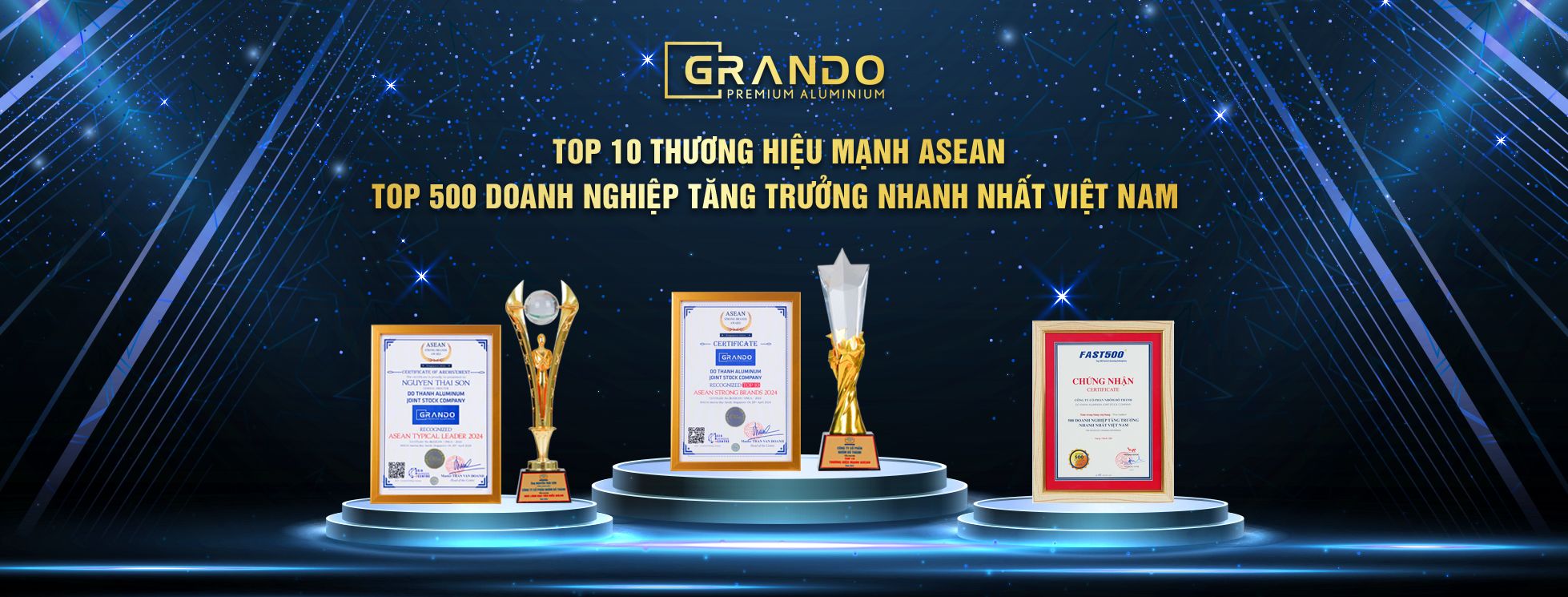 Những nỗ lực không mệt mỏi của Nhôm Đô Thành đã được ghi nhận bằng những giải thưởng danh giá như Cúp vàng thương hiệu Việt Nam, Cúp vàng thương hiệu mạnh toàn quốc, chứng nhận ISO 9001:2015 và đặc biệt là danh hiệu Thương hiệu Quốc gia Việt Nam năm 2024 cho thương hiệu nhôm thanh định hình Grando. Đây không chỉ là niềm tự hào của riêng doanh nghiệp mà còn là sự công nhận của Đảng, Nhà nước và người tiêu dùng đối với những đóng góp của Nhôm Đô Thành vào sự phát triển kinh tế - xã hội.