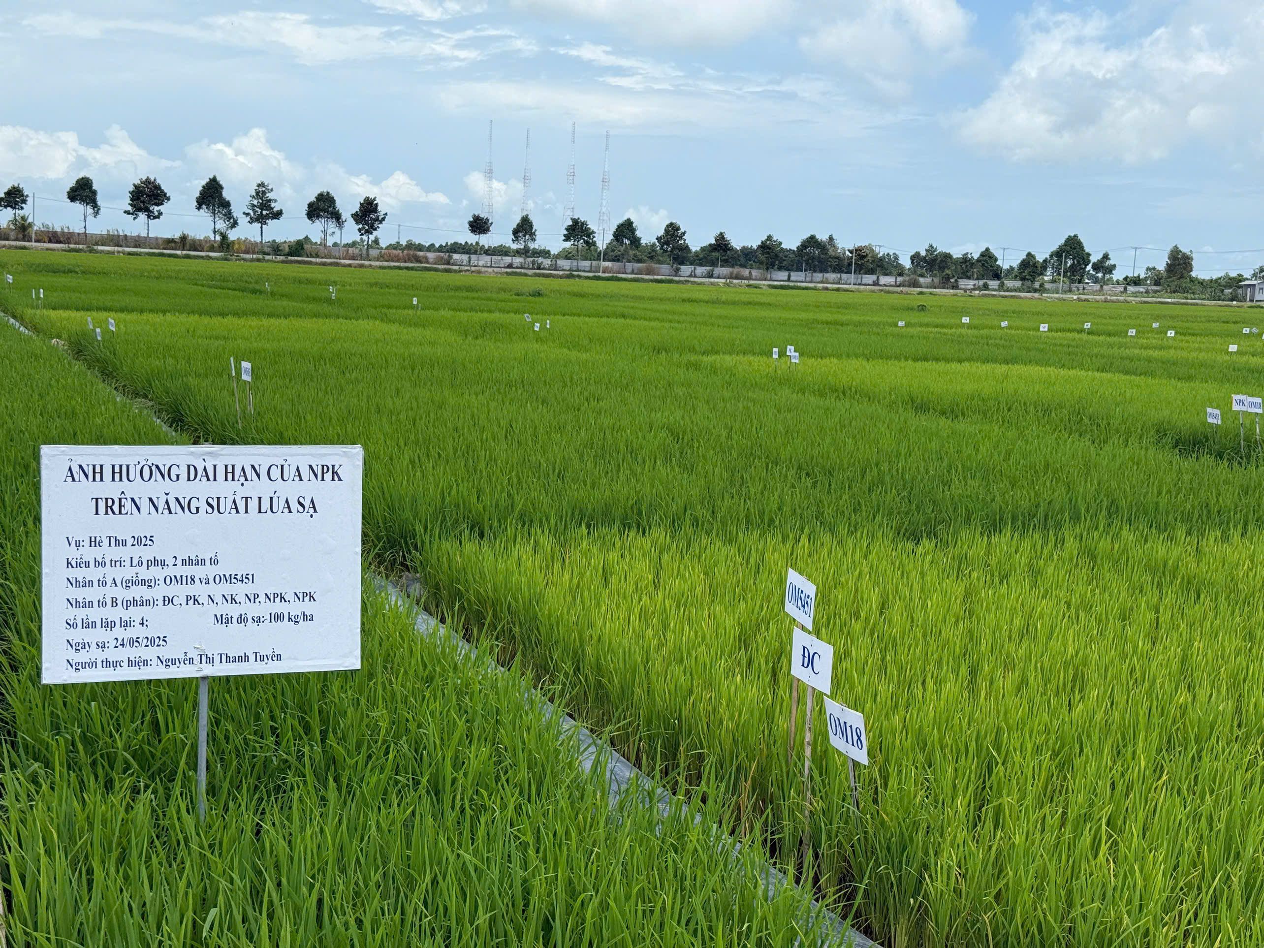 Dẫn chúng tôi ra thăm cánh đồng rộng 30ha chuyên trồng lúa để phục vụ nghiên cứu thử nghiệm, Tiến sĩ Trần Ngọc Thạch chỉ vào từng khoảnh ruộng được với những ký hiệu biển báo chi tiết và giải thích: “Chỗ này là nơi gần 50 năm không bón phân, chỗ kia chỉ bón mỗi đạm, hoặc có chỗ chỉ bón lân hoặc kali… để xem chất đất biến đổi thoái hóa đi như thế nào. Mỗi giống lúa sau 5 năm sẽ bị thoái hóa, vì thế cũng phải trồng đồng nhất trên một khoảnh ruộng để theo dõi. Chúng tôi cũng trồng khoảnh lúa sạ bên cạnh khoảnh lúa cấy và đều không phân bón để theo dõi xem có khác nhau không”.