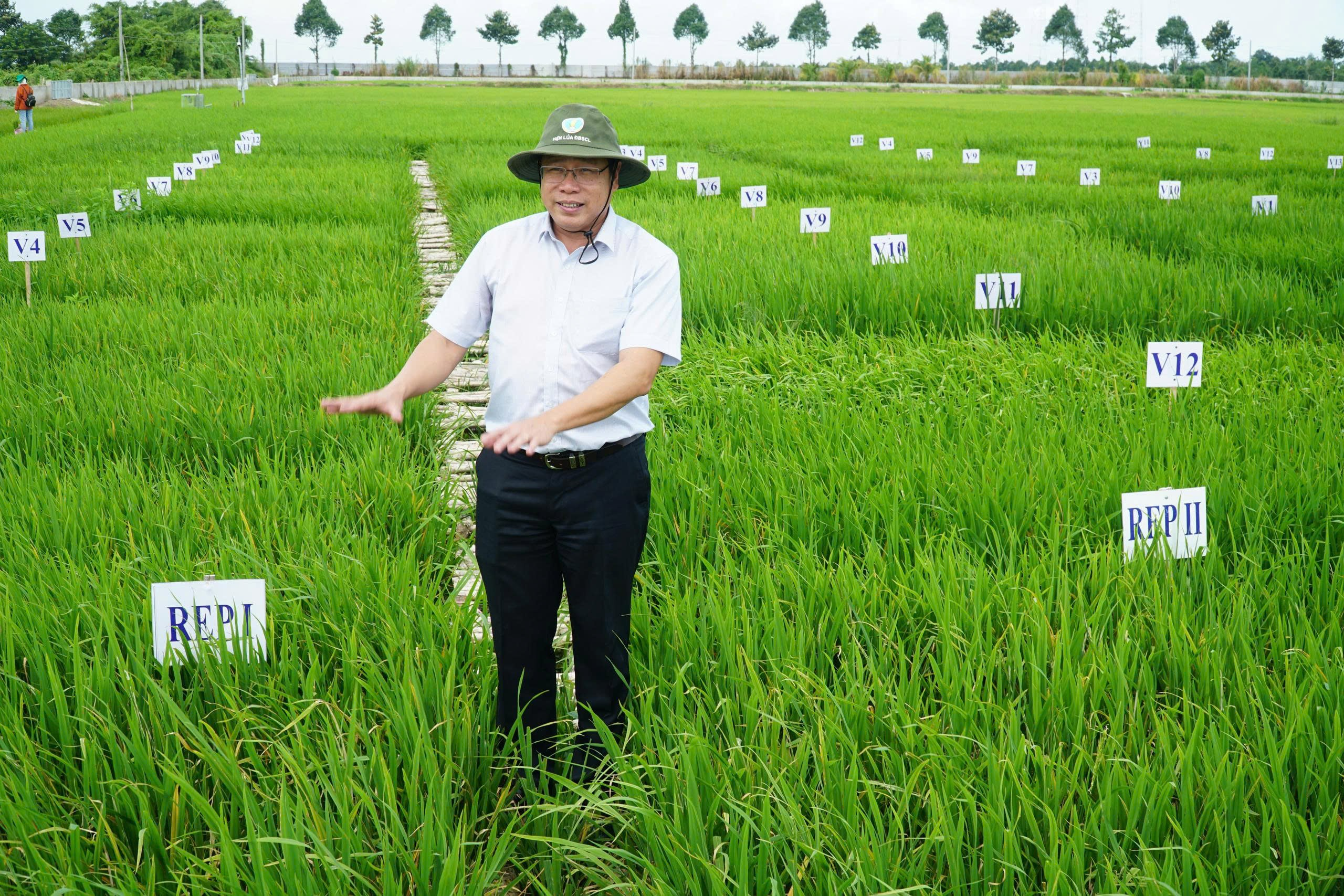 Tiến sĩ Trần Ngọc Thạch – Viện trưởng Viện lúa ĐBSCL và các cộng sự nghiên cứu từng loại sâu bệnh và ảnh hưởng của biến đổi khí hậu tới các giống lúa…