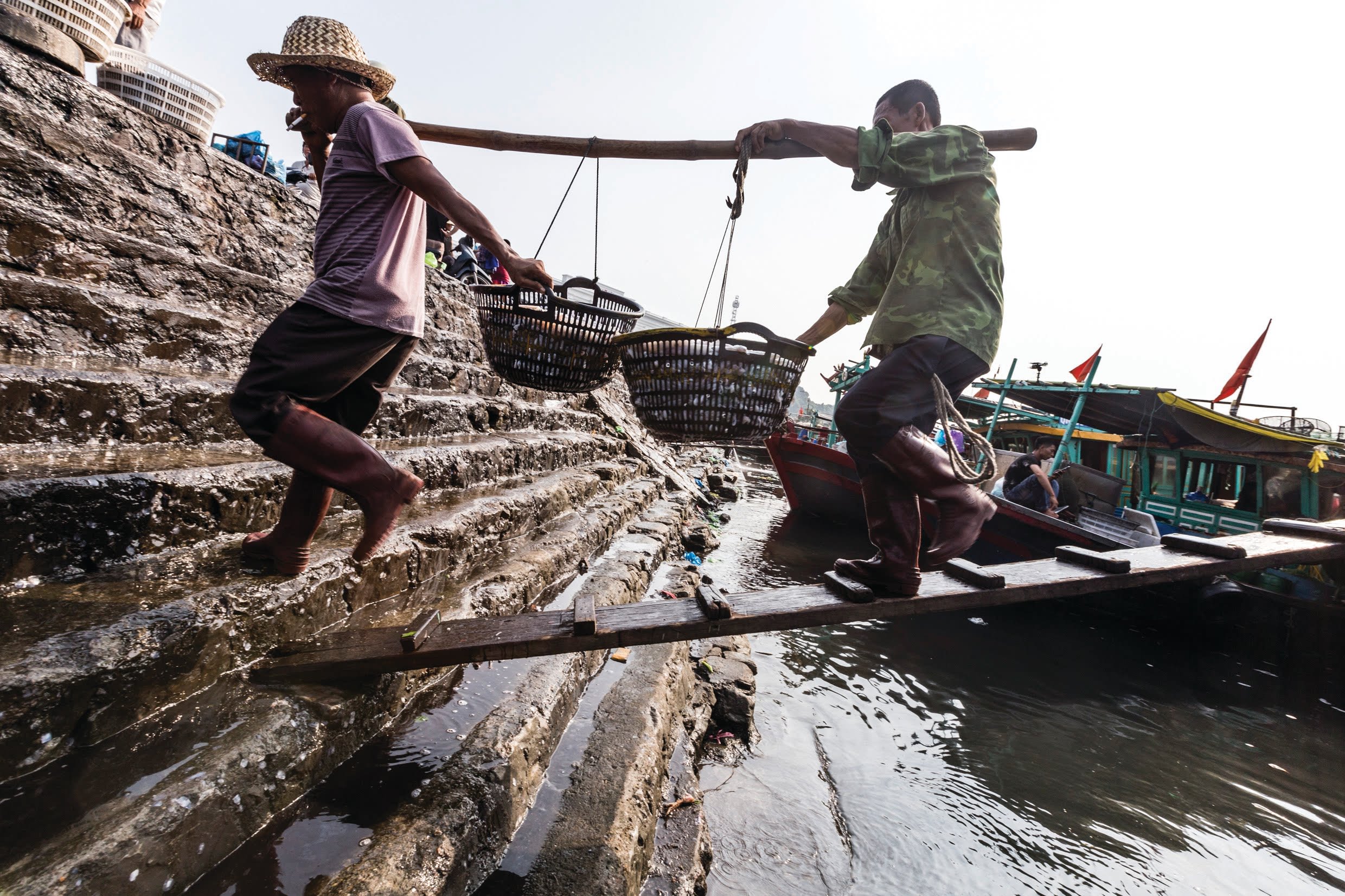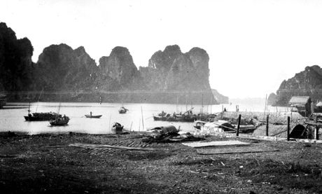下龙湾沿岸的钓鱼码头。(1938年由法国摄影师贝鲁耶拍摄)。