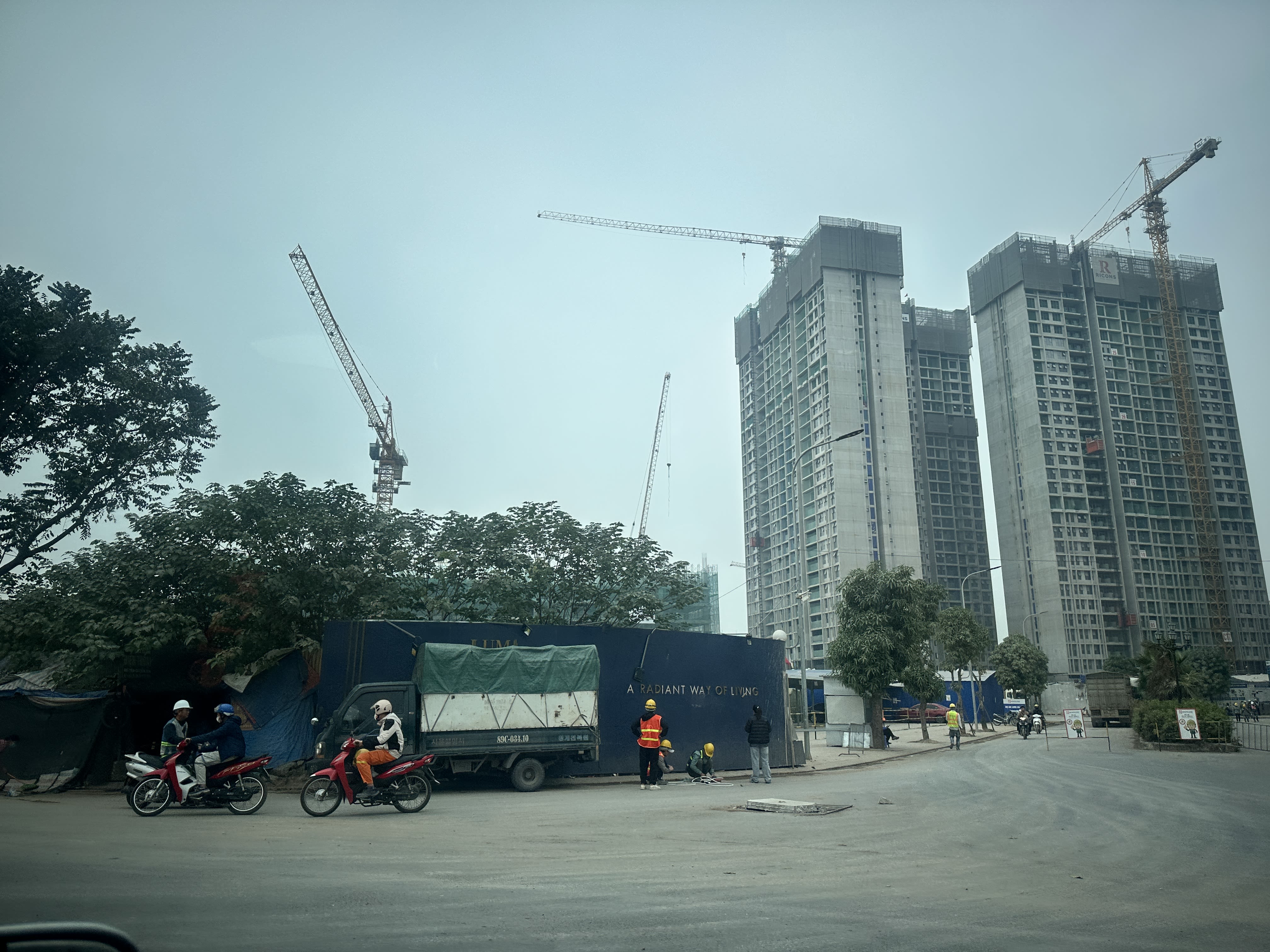 Khí bụi từ các công trình xây dựng trong nội đô đe dọa hệ hô hấp mỗi ngày. (Ảnh: THÙY LINH)