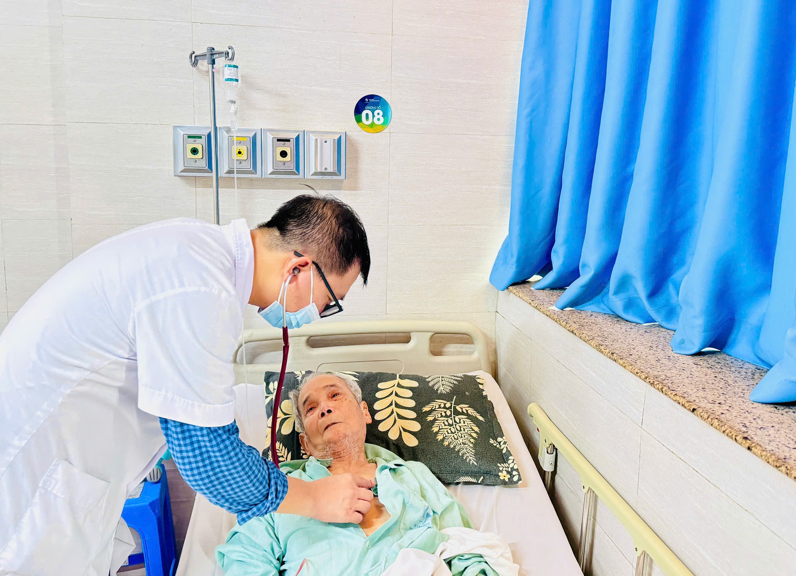 Suốt 5 ngày liền, cơn ho rát buốt xuống tận cuống phổi và tình trạng sốt âm ỉ gây ra những đợt tức ngực dồn dập khiến ông gần như kiệt sức. Mới đặt stent tim được ba tháng và mang sẵn bệnh phổi tắc nghẽn mạn tính, gia đình càng lo lắng. Ông Kiệm được gia đình đưa thẳng đến Bệnh viện Lão khoa Trung ương trong tình trạng khó thở nghiêm trọng. “Thời tiết âm u, không khí ô nhiễm, lại thêm có thể lây cúm từ người nhà… nên cơ thể tôi mệt lắm, thở cũng thấy nặng”, ông Kiệm nói ngắt quãng giữa những cơn ho.