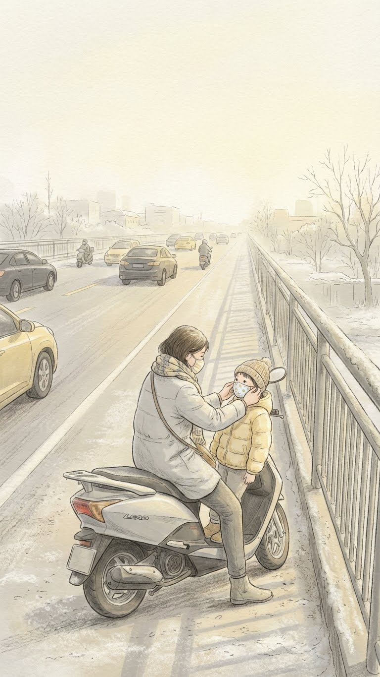 Tại Bệnh viện Lão khoa Trung ương, ca trực cấp cứu vội vã tiếp nhận ông Quách Tiến Kiệm (83 tuổi) được gia đình đưa đến trong tình trạng khó thở nghiêm trọng. Cũng sáng hôm đó, trên những con đường cửa ngõ của Hà Nội, nhiều phụ huynh dừng xe bên lề đường, kéo cao khẩu trang cho con trước khi hòa vào dòng phương tiện chìm trong lớp bụi mịn. Tại bến xe phía nam, một số người lặng lẽ quấn thêm chiếc khăn trùm ngoài lớp khẩu trang, lên xe trở về quê tránh bụi...