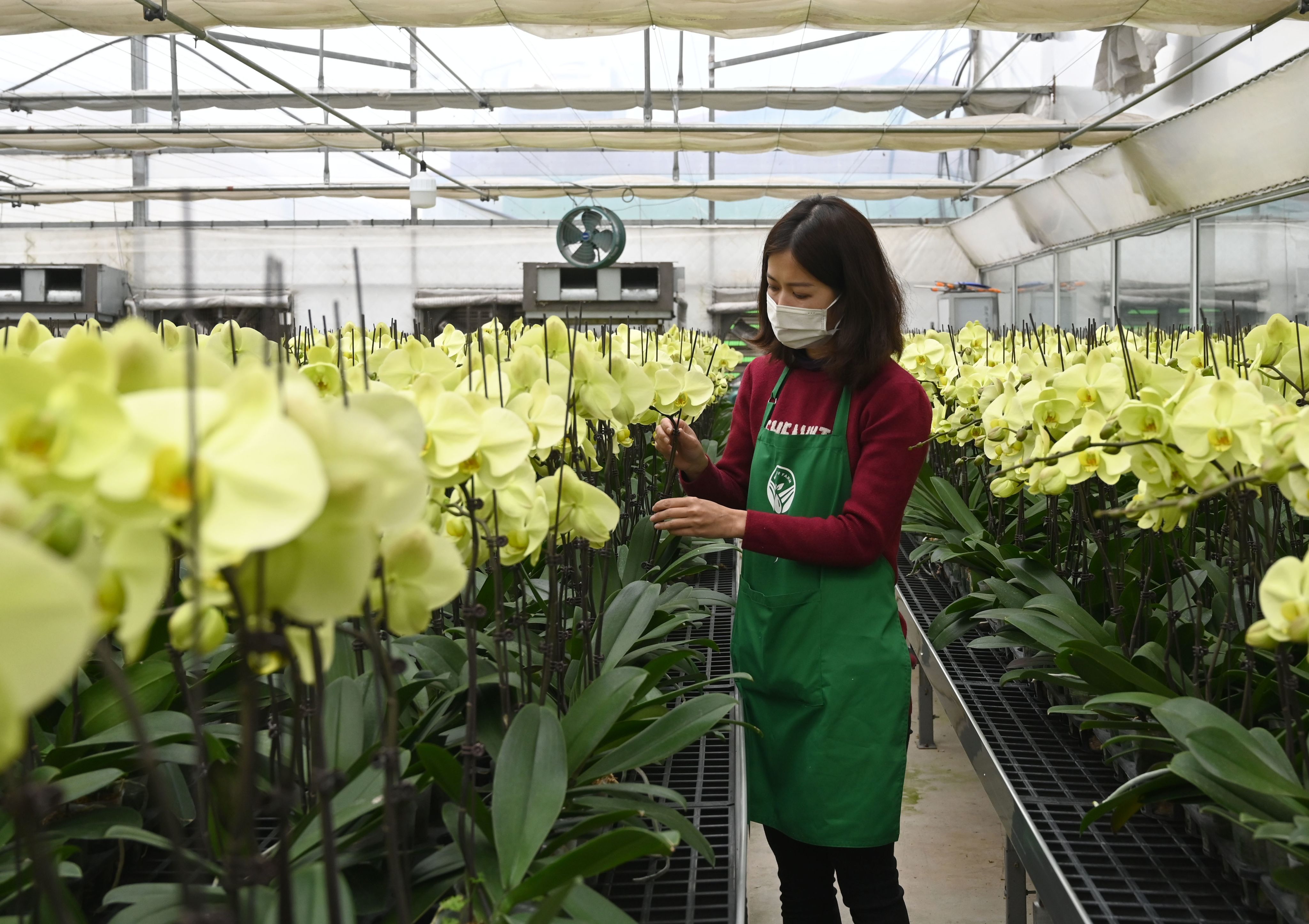 Caring for orchids at Me Linh F-Farm in Me Linh District. (Photo: Dang Anh)