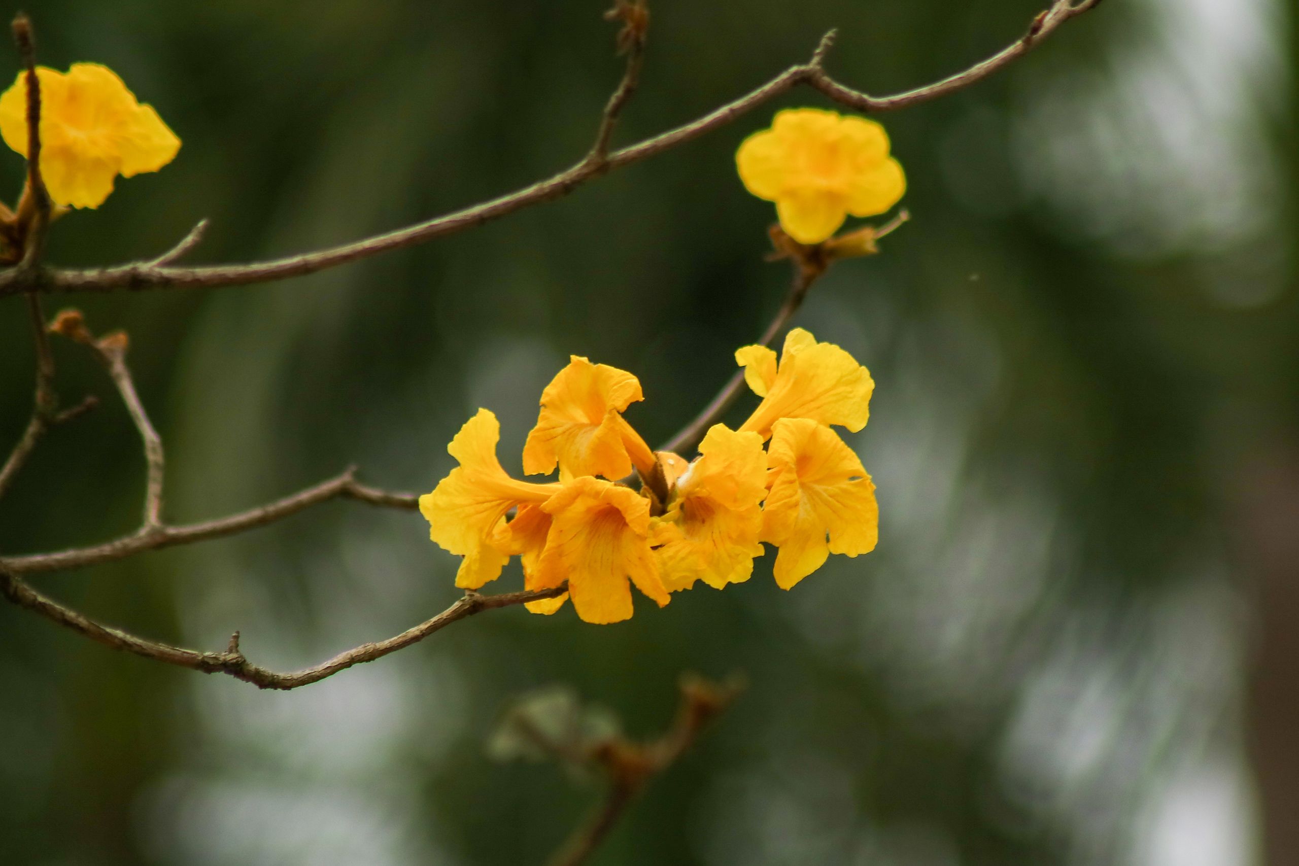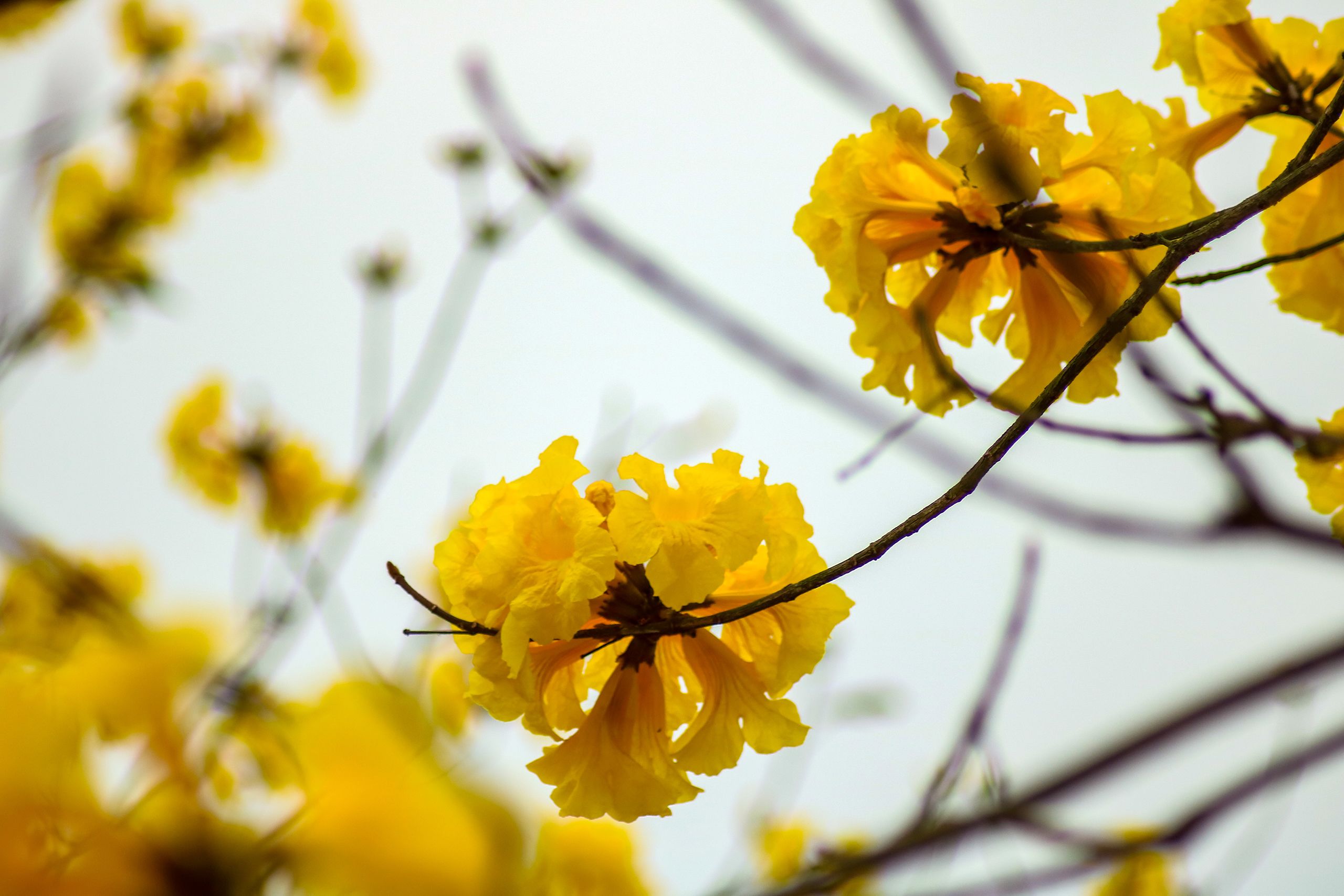 Les arbres à trompette des Caraïbes commencent à fleurir au printemps, depuis la fin du mois de février, jusqu’à mai. Une fois fleuries, les grappes de fleurs jaunes des arbres à trompette des Caraïbes recouvrent toutes les branches, créant un paysage féérique.