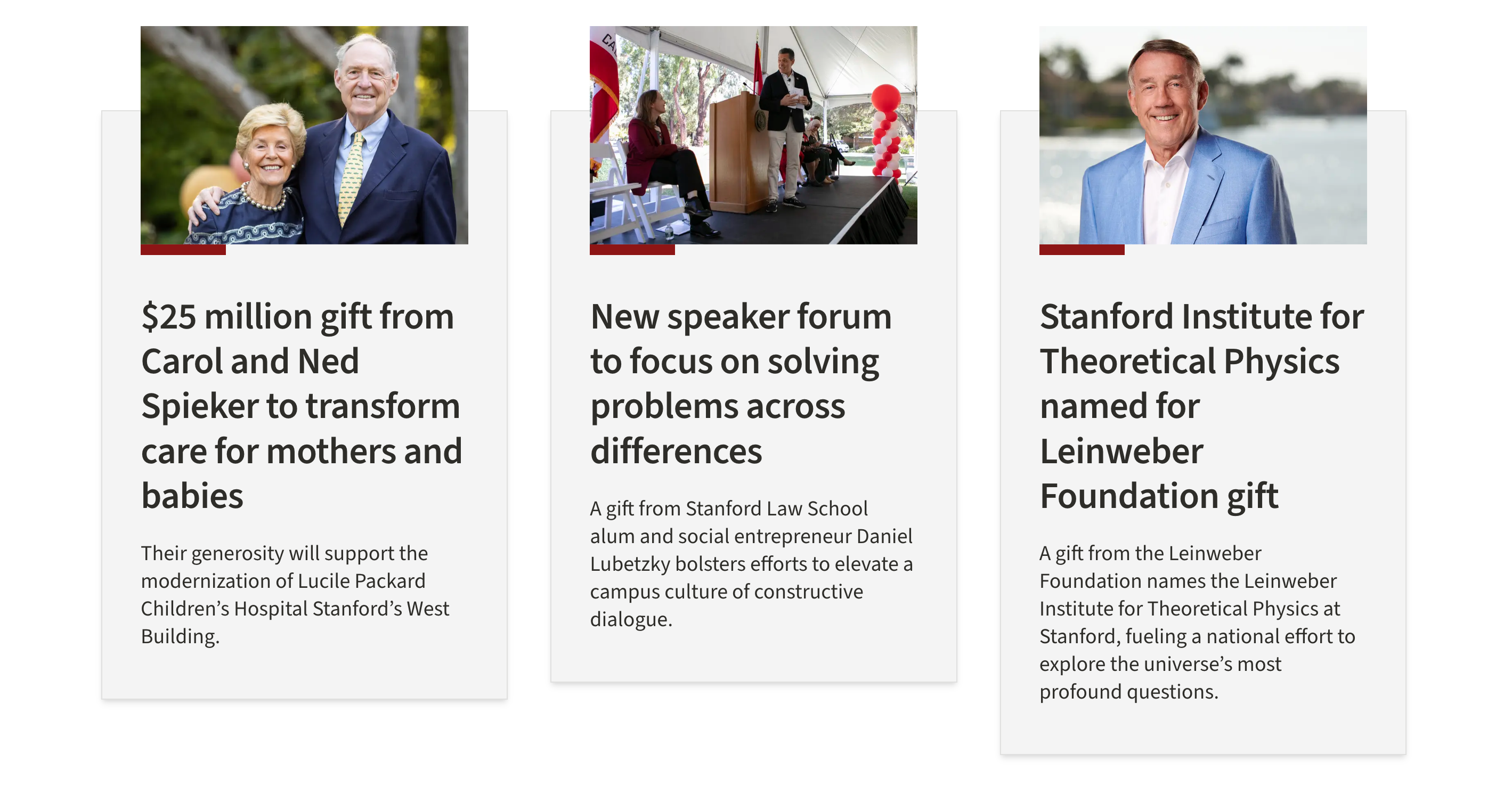 Vợ chồng Stanford đã hiến tặng toàn bộ tài sản của mình để thành lập trường và quỹ hiến tặng ban đầu. Họ không chỉ cho tiền, họ hiến dâng cả phần đời còn lại và cả di sản vật chất cuối cùng để xây dựng trường. Quỹ hiến tặng đó chính là bệ đỡ tài chính cho phép Stanford vượt qua những khủng hoảng ban đầu (như trận động đất 1906) và trở thành cái nôi của Thung lũng Silicon sau này.