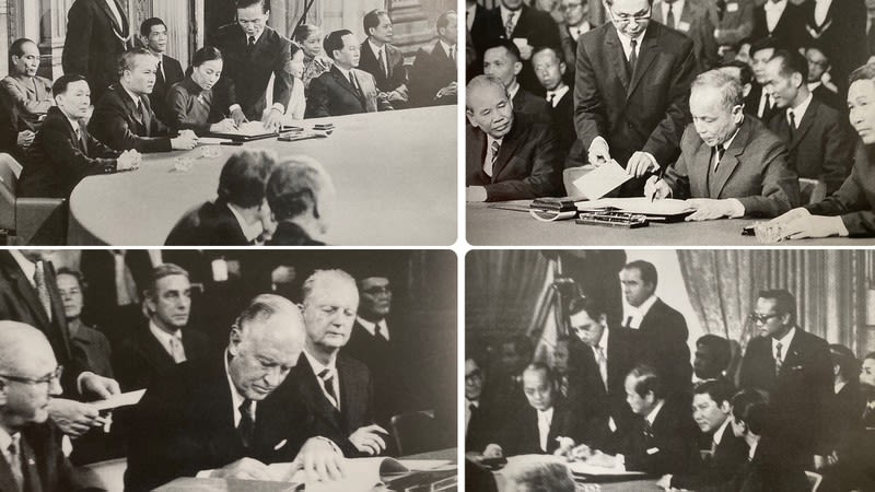 27 января 1973 года в Международном конференц-центре Клебер в Париже, Франция, были подписаны соглашения о прекращении войны и восстановлении мира во Вьетнаме.