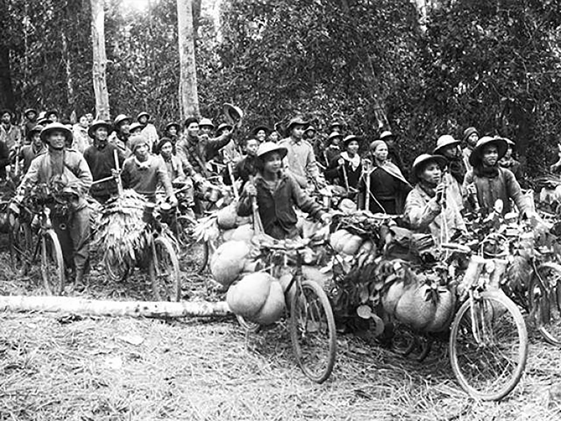 Binh đoàn xe đạp thồ trên đường ra chiến dịch. (Ảnh: TTXVN)