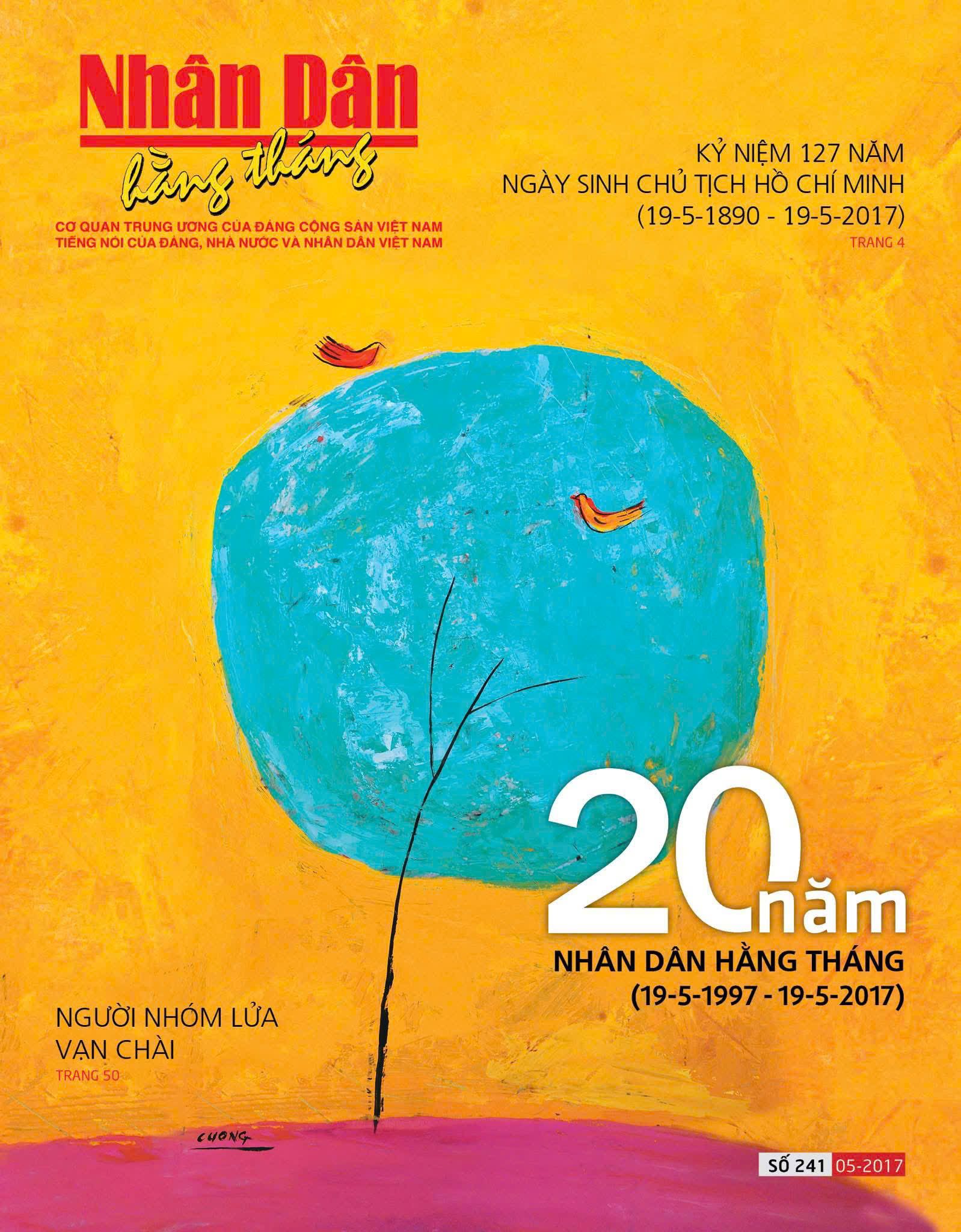 Tranh bìa họa sĩ Lê Thiết Cương vẽ tặng Nhân Dân hằng tháng nhân dịp kỷ niệm 20 năm ra mắt số đầu.
