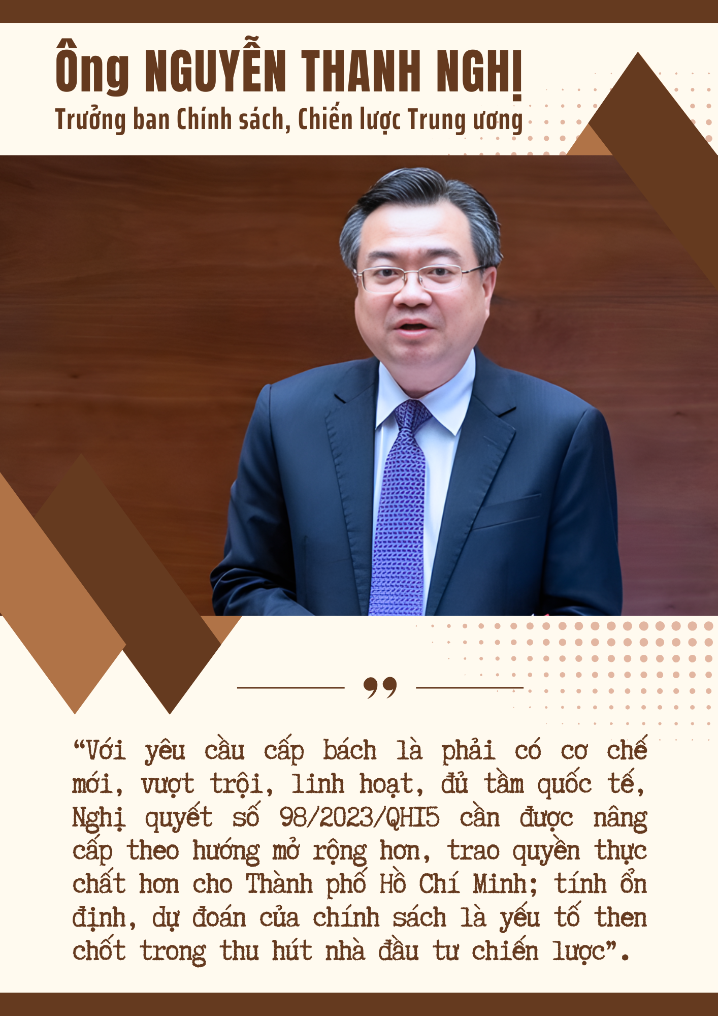 Nghị quyết 98/2023/QH15 ngày 24/6/2023 của Quốc hội về thí điểm một số cơ chế, chính sách đặc thù phát triển Thành phố Hồ Chí Minh đã tạo chuyển biến tích cực, giúp kinh tế thành phố phục hồi và tăng trưởng, nhưng vẫn chưa đủ để tháo gỡ các "nút thắt" mang tính cấu trúc, nhất là trong thu hút đầu tư và nhà đầu tư chiến lược. Khi đối diện với mục tiêu vươn vào nhóm 100 thành phố đáng sống hàng đầu thế giới, hệ thống cơ chế hiện có vẫn chưa giải quyết được các nút thắt cốt lõi.