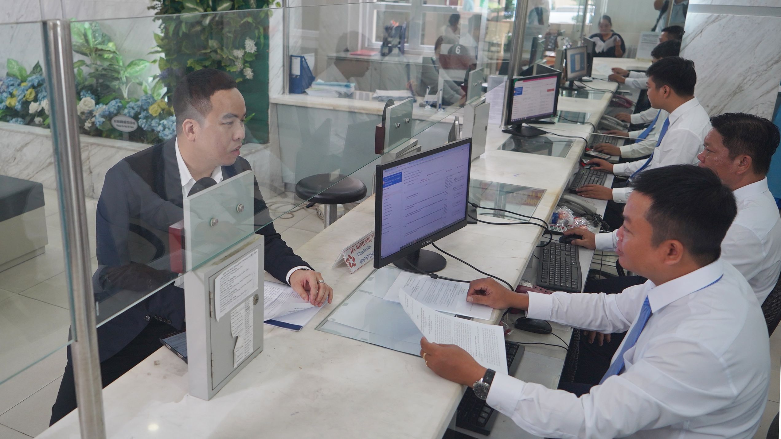 Người dân làm thủ tục hành chính tại phường Sài Gòn.