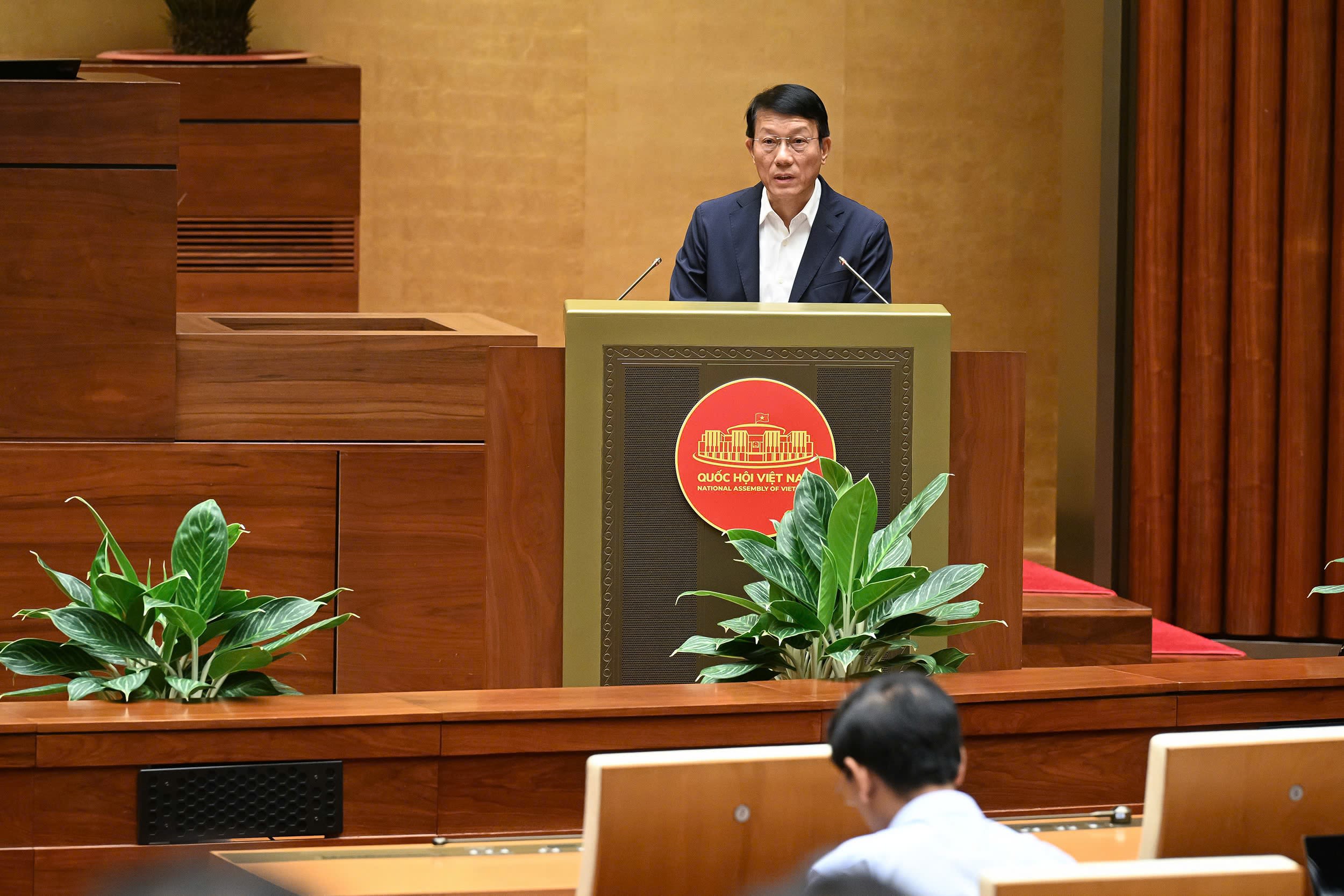 Bộ trưởng Công an Lương Tam Quang trình bày Tờ trình Dự án Luật Dẫn độ. Ảnh: quochoi.vn