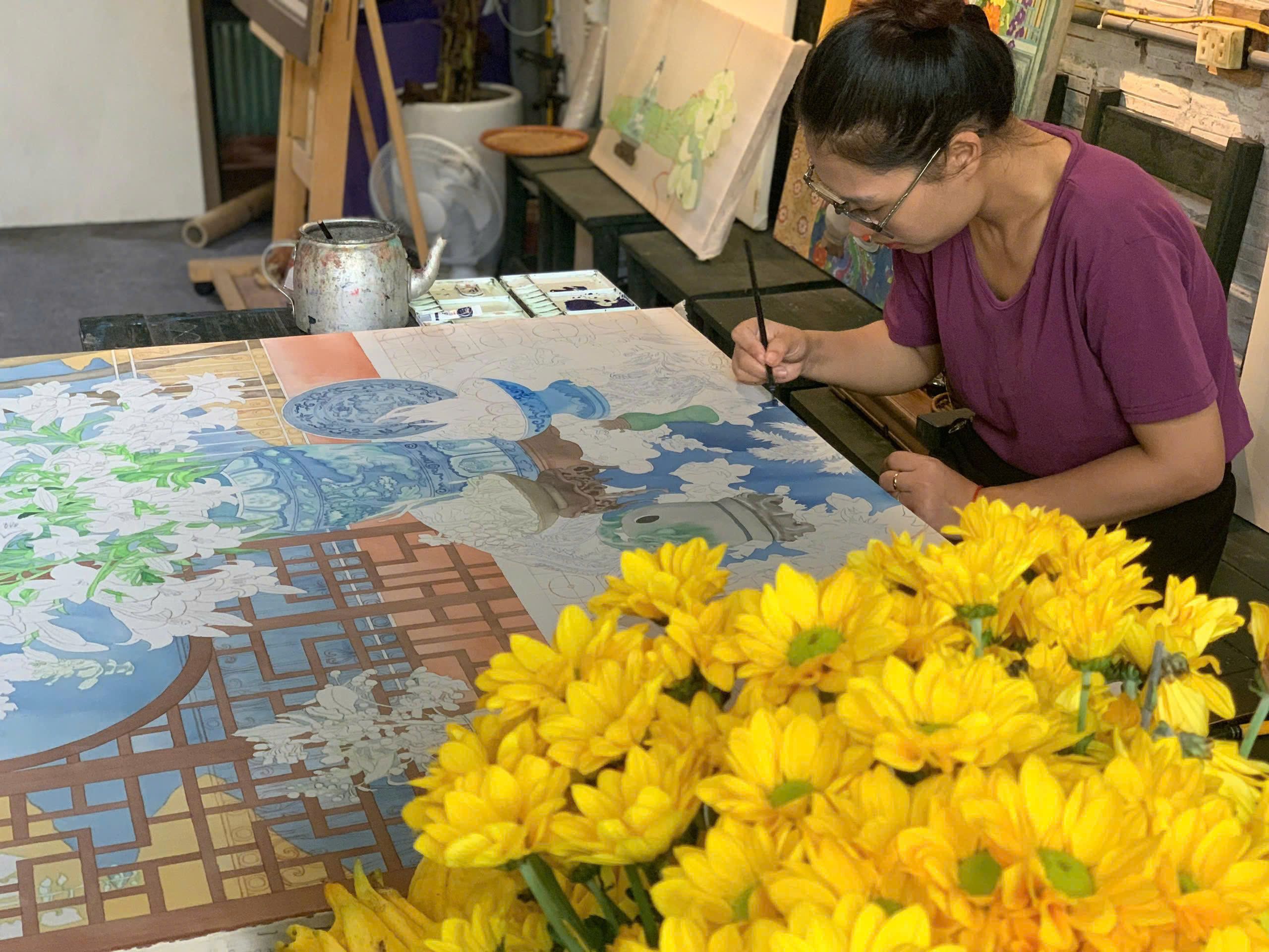 Phóng viên: Có kỷ niệm nào đặc biệt trong quá trình sáng tác loạt tranh lần này khiến chị nhớ mãi và muốn chia sẻ với công chúng?