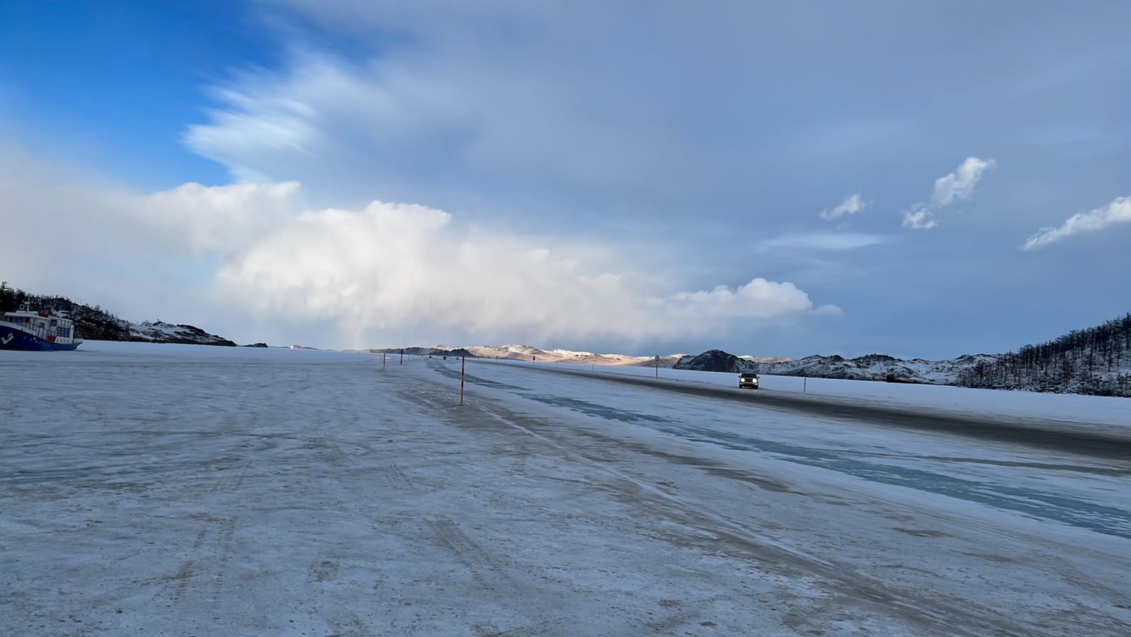Vào mùa đông, đảo Olkhon được nối với đất liền bằng một tuyến đường dài 12 km bắt đầu từ Irkutskaya Guba trên đảo Olkhon, đến làng Kurkut bên hồ. Lớp băng của tuyến đường này dày khoảng 60 cm, đủ sức bền chịu đựng các loại xe cộ trọng tải tối đa 10 tấn. Tuyến đường đặc biệt này chỉ hoạt động trong khoảng thời gian từ tháng 1 đến cuối tháng 3, là khi tiết trời lạnh giá và lớp băng còn chắc chắn.