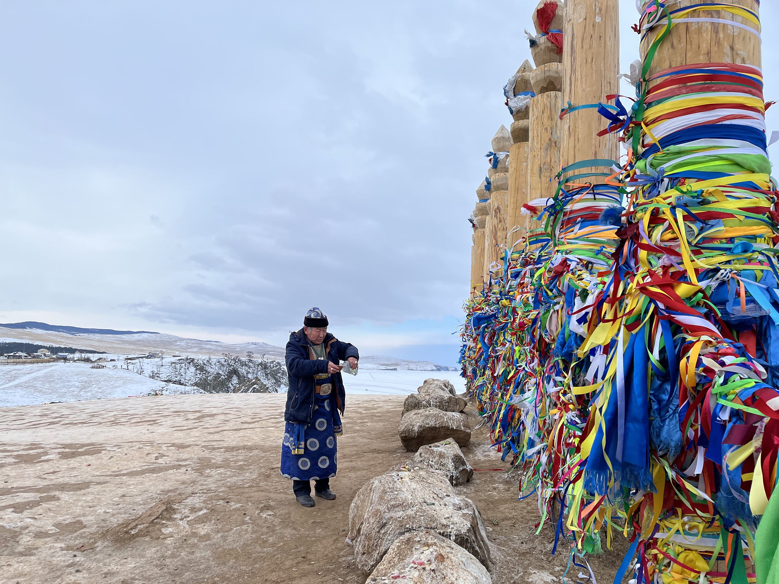 Tại Mũi Burkhan trên đảo Olkhon, bạn có thể nhìn thấy 13 trụ cột nghi lễ Serge theo tín ngưỡng Shaman giáo của người Buryat và Yakut. Cột Serge được các shaman quyết định dựng ở đâu thì có nghĩa rằng nơi đó đã có chủ nhân chăm sóc phần hồn. Mười ba chiếc cột Serge ở Mũi Burkhan, gần Vách đá Pháp sư, tượng trưng cho 13 bộ lạc đã từng sống trên đảo Olkhon. Cạnh mỗi cột gỗ là những tảng đá lớn, nơi dâng lễ vật cho chủ nhân.