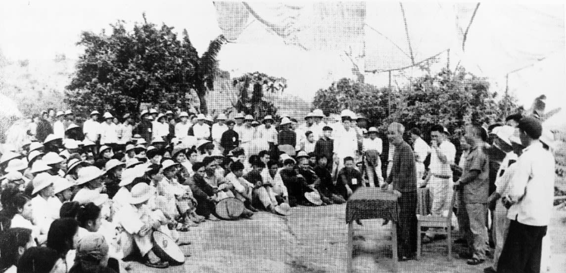 Ngày 20/3/1961, Bác Hồ đến thăm cán bộ và xã viên hợp tác xã Đồng Tâm, huyện Đoan Hùng, tỉnh Phú Thọ. Ảnh: TTXVN