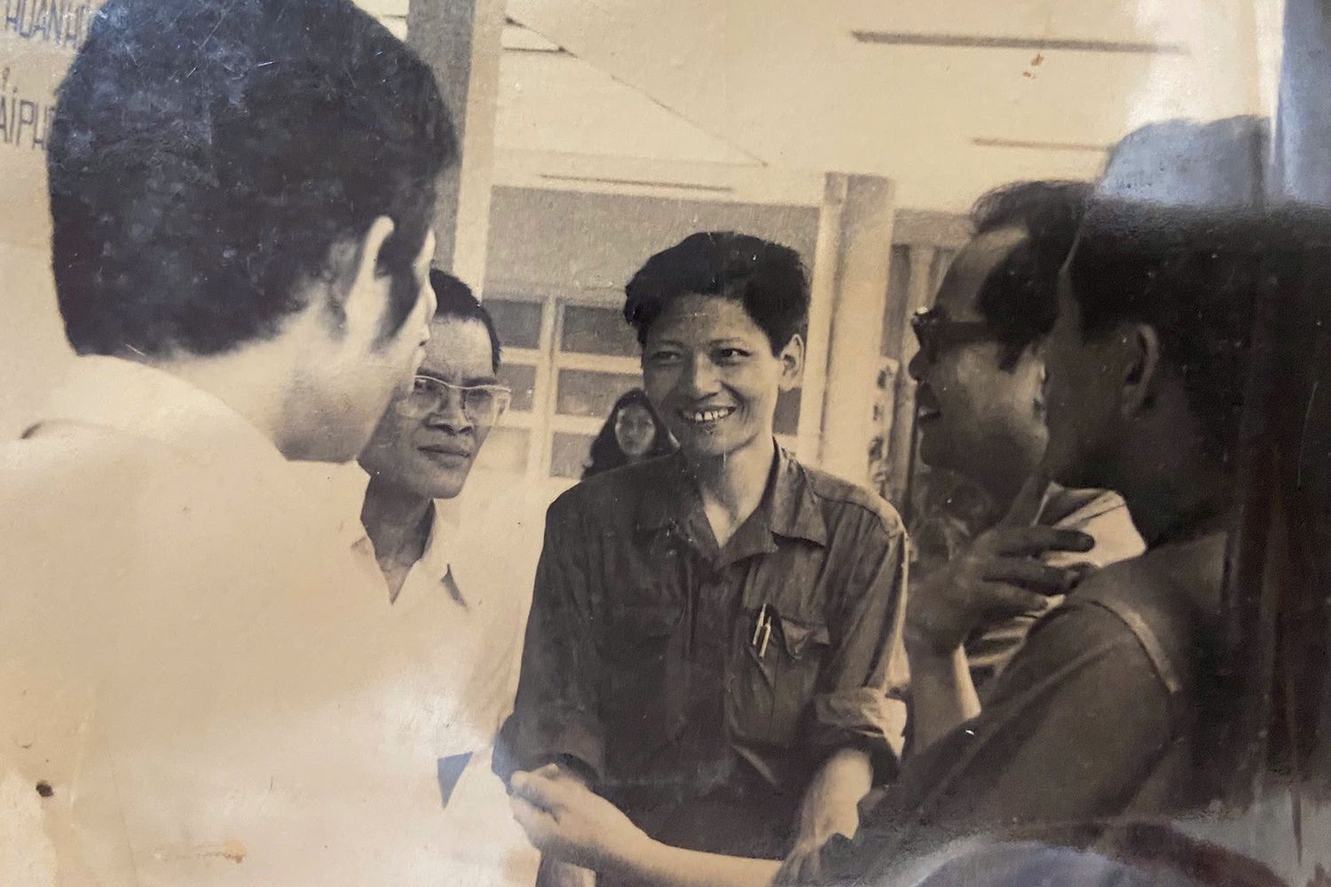 Thầy giáo Văn trò chuyện với các giáo sư và giảng viên của Trường đại học Văn khoa Sài Gòn.