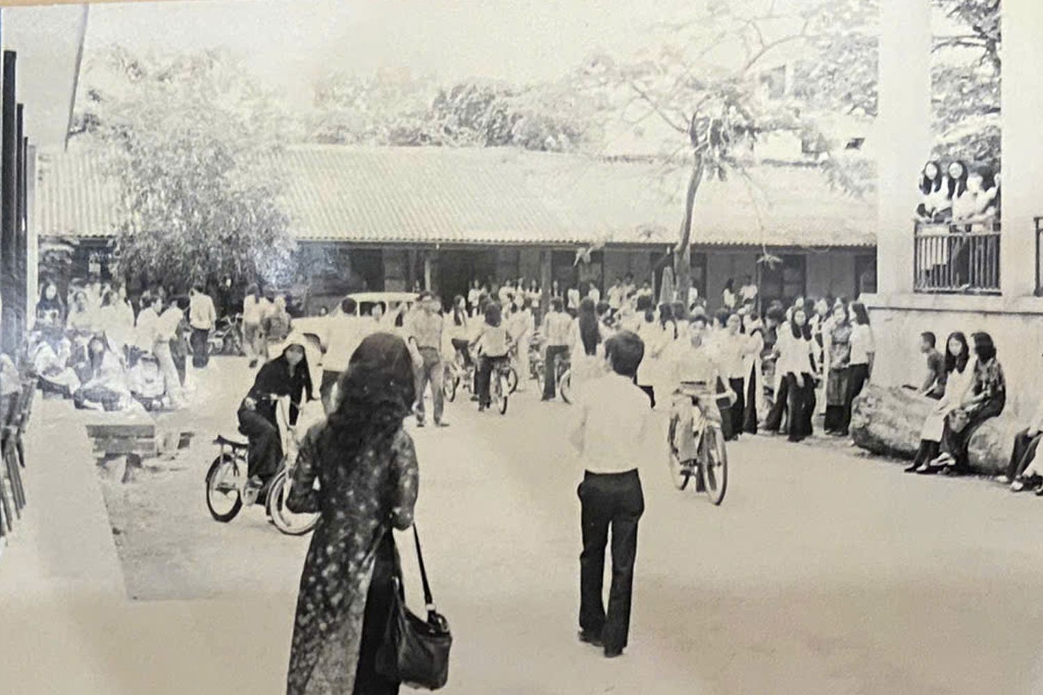 Cảnh sân trường trong ngày đầu Sài Gòn được giải phóng.