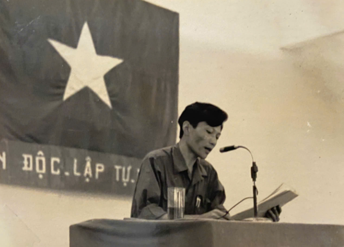 Nhà giáo Đỗ Trọng Văn phát biểu tại Lễ chào mừng Ngày Giải phóng hoàn toàn miền nam, thống nhất đất nước tại Trường đại học Văn khoa Sài Gòn, tháng 5/1975.