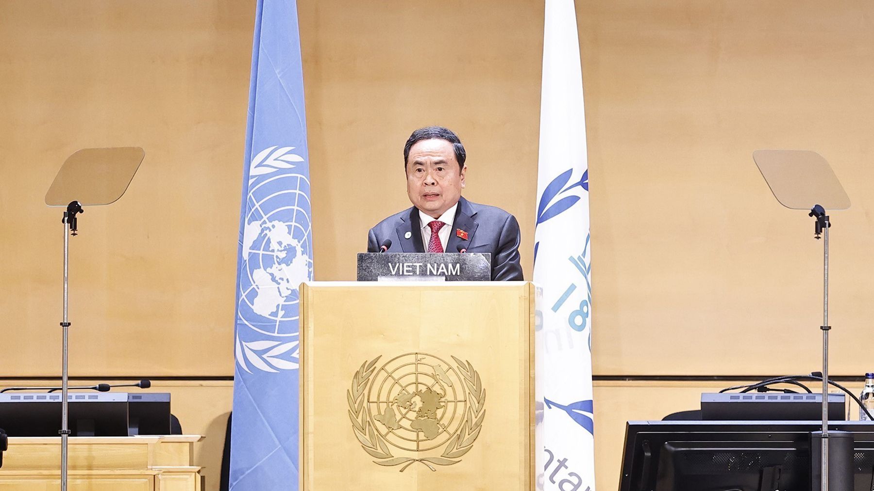 Chủ tịch Quốc hội Trần Thanh Mẫn có bài phát biểu quan trọng tại Phiên thảo luận chung của Hội nghị các Chủ tịch Quốc hội Thế giới lần thứ 6. (Ảnh: TTXVN)