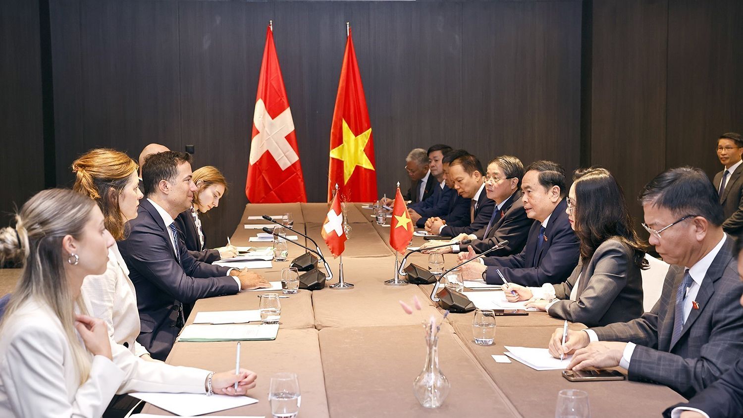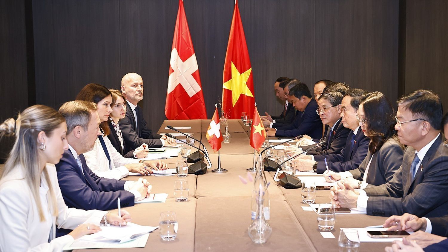 Các nhà lãnh đạo Thụy Sĩ nêu rõ, Thụy Sĩ luôn coi trọng tăng cường quan hệ Đối tác toàn diện với Việt Nam; nhấn mạnh, việc duy trì gặp gỡ thường xuyên giữa đại diện cơ quan nghị viện hai bên là rất quan trọng, góp phần tăng cường quan hệ hai nước.
