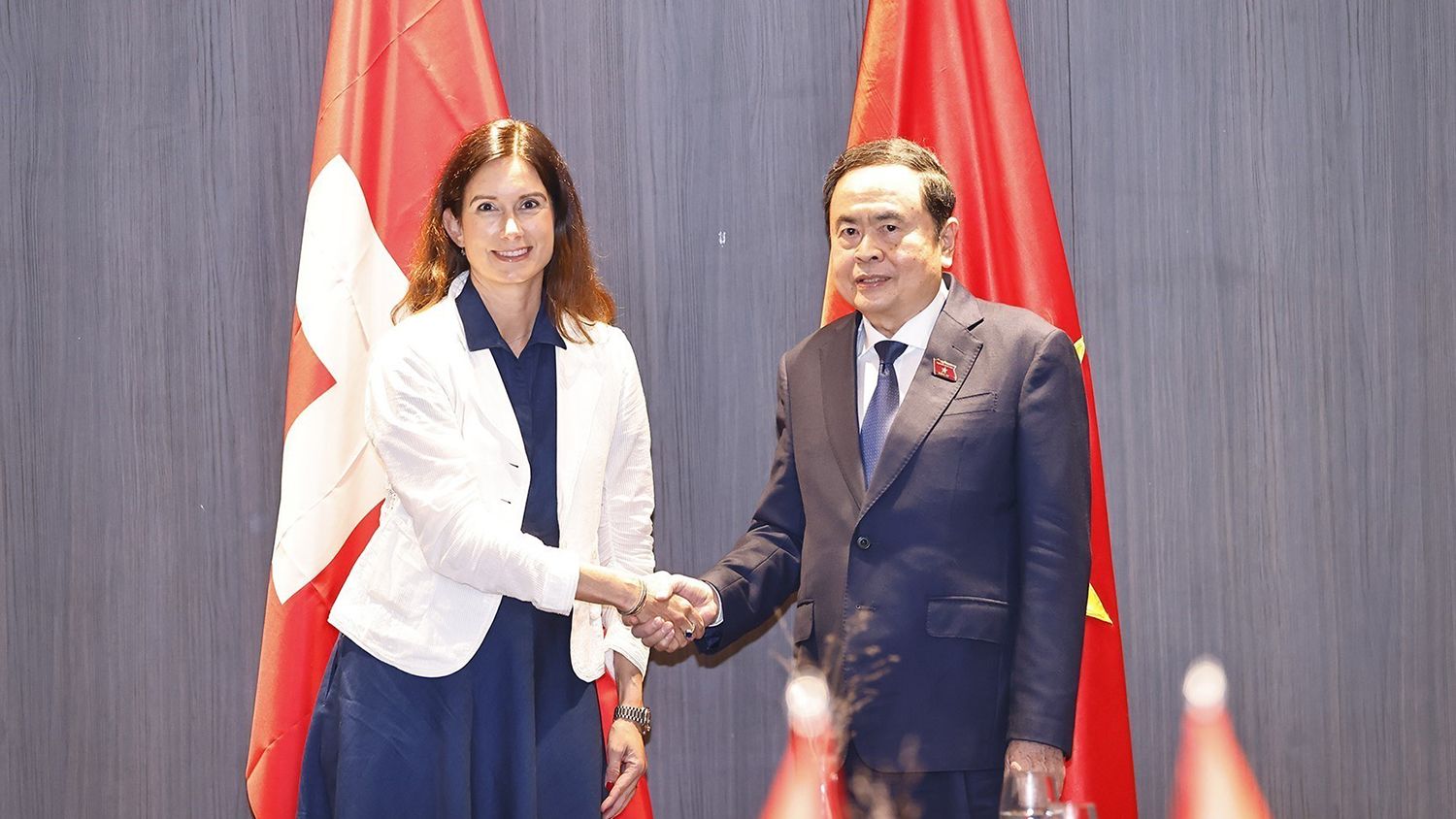 Chủ tịch Quốc hội bày tỏ hài lòng trước những bước phát triển tích cực của quan hệ hai nước, nhất là việc hai nước duy trì thường xuyên trao đổi đoàn cấp cao, trong bối cảnh hai nước sẽ kỷ niệm 55 năm thiết lập quan hệ ngoại giao vào năm 2026. Chủ tịch Quốc hội cảm ơn sự ủng hộ và giúp đỡ quý báu của Thụy Sĩ đối với sự nghiệp đấu tranh thống nhất đất nước trước đây và công cuộc phát triển kinh tế-xã hội hiện nay của Việt Nam, với tổng số vốn ODA dành cho Việt Nam đến nay đạt gần 800 triệu USD và gần đây cam kết hỗ trợ 50 triệu USD cho Chương trình hợp tác phát triển giai đoạn 2025-2028.