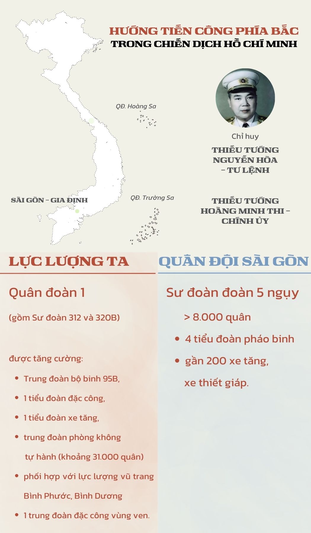 Theo kế hoạch, 17 giờ ngày 26 tháng 4 năm 1975, Chiến dịch Hồ Chí Minh bắt đầu. Trên hướng bắc Sài Gòn, Quân đoàn 1 sử dụng Sư đoàn 320B cùng một số đơn vị đảm nhiệm tiến công, thọc sâu vào trung tâm Sài Gòn, chiếm Bộ Tổng tham mưu và chi khu Gia Định. Hướng thứ yếu, Sư đoàn 312 và một số đơn vị khác đảm nhiệm tiến công, chia cắt, ngăn chặn, bao vây cô lập tiến tới tiêu diệt sư đoàn 5 ngụy, không cho chúng co cụm hoặc rút chạy về Sài Gòn.