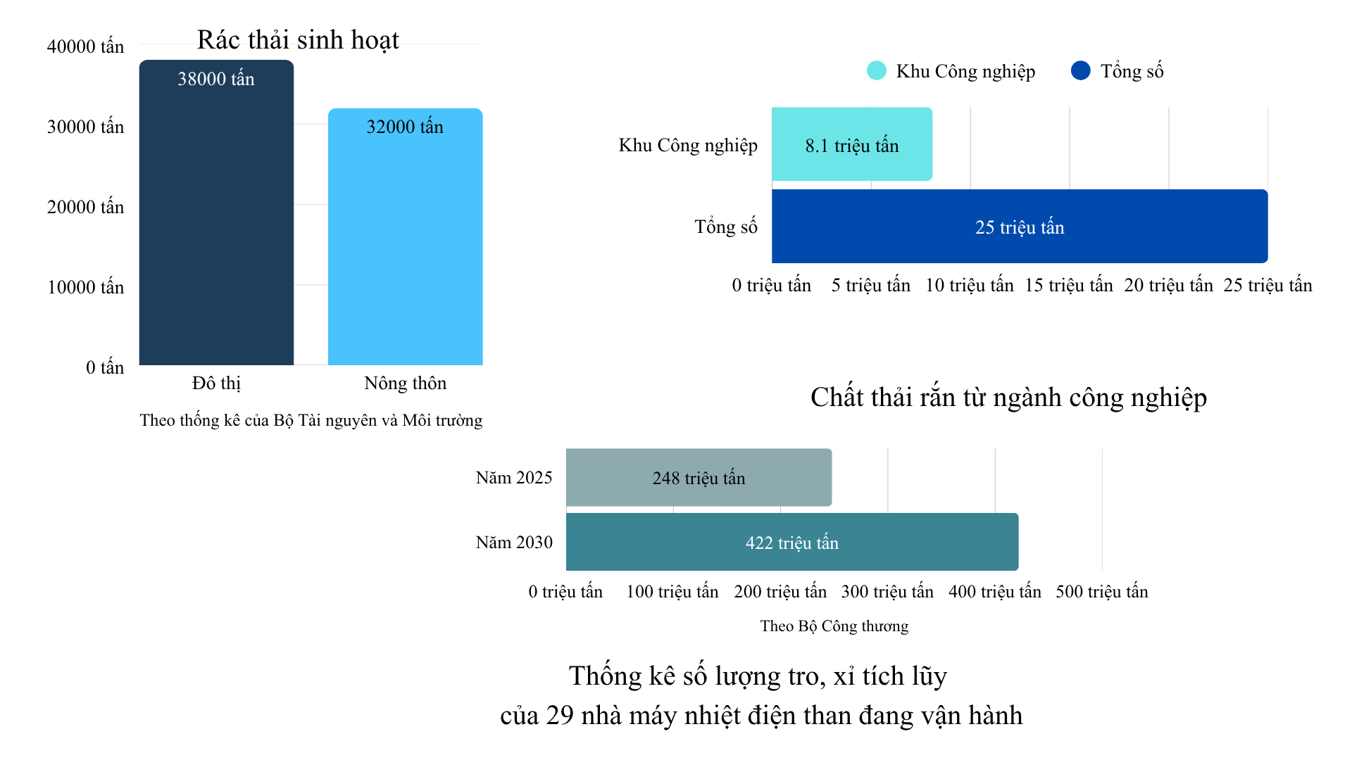 Theo Bộ Công thương, dự kiến đến năm 2025 sẽ có 248 triệu tấn tro, xỉ tích lũy của 29 nhà máy nhiệt điện than đang vận hành và đến năm 2030 sẽ là 422 triệu tấn, đòi hỏi một quỹ đất rất lớn làm bãi chứa.