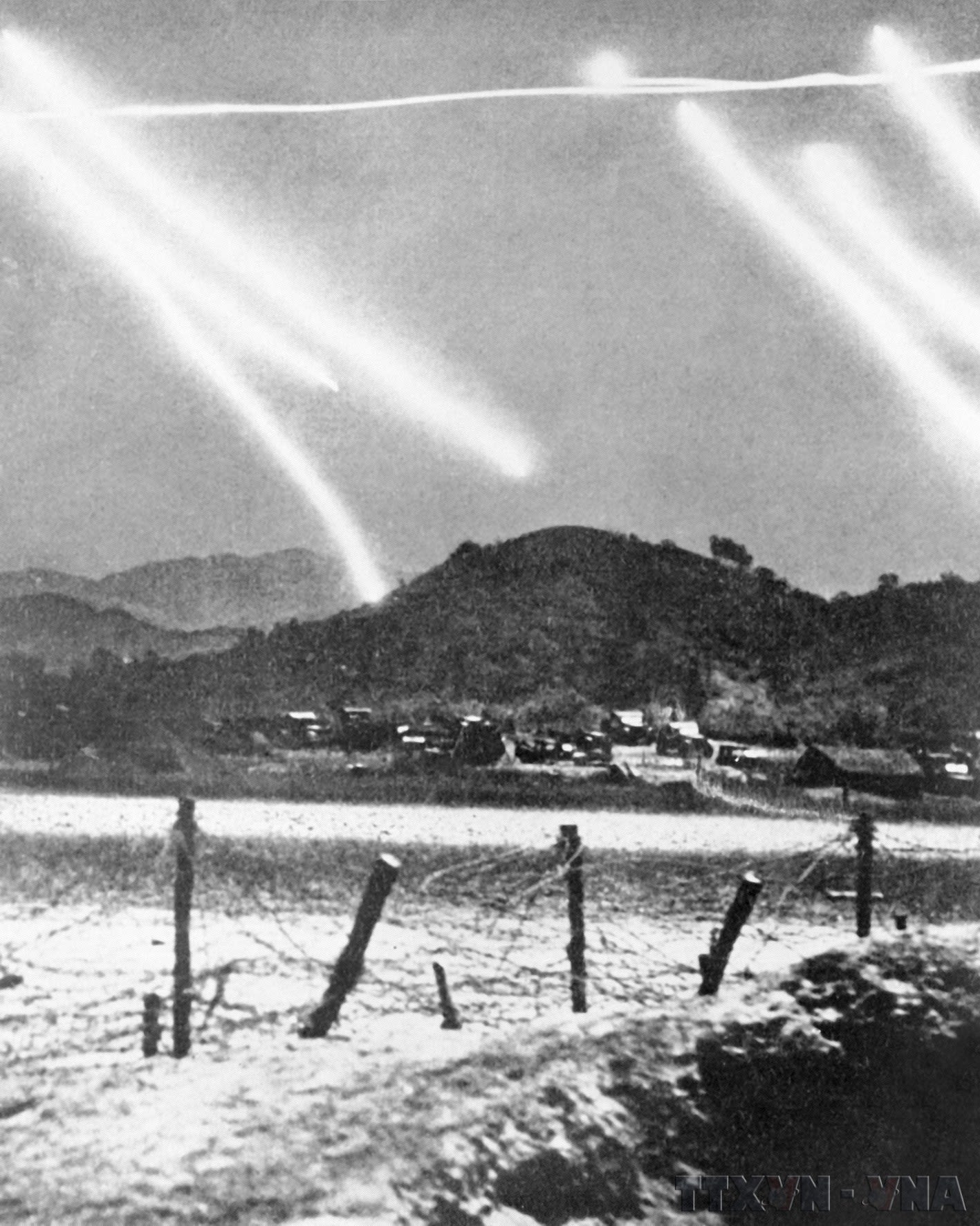 Các đơn vị pháo binh của ta tiếp tục pháo kích vào các vị trí của địch. Các vị trí của địch bị trúng đạn pháo đang bốc cháy. (Ảnh: TTXVN)
