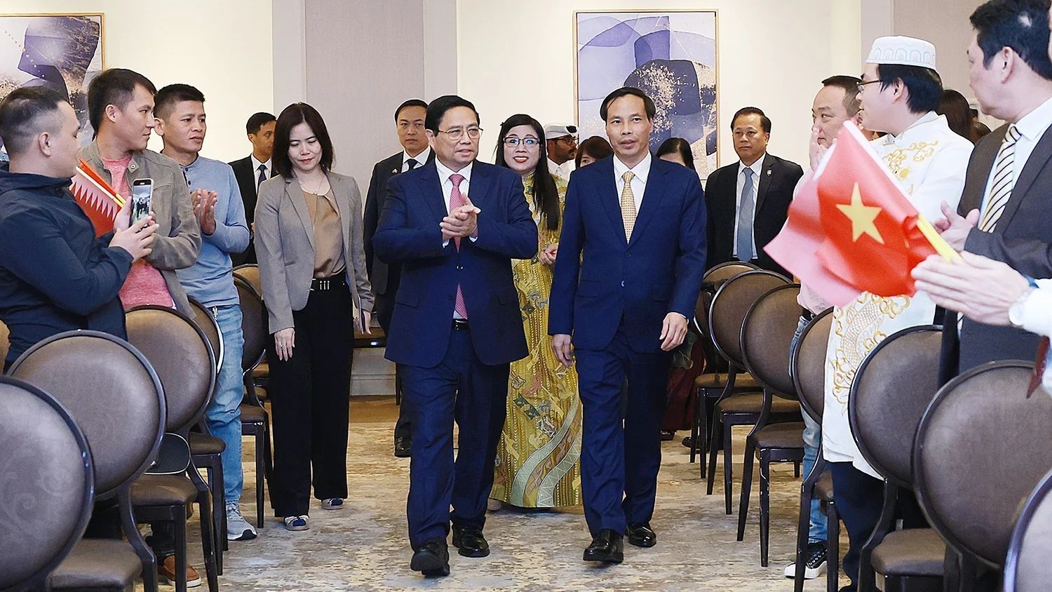 Премьер-министр Фам Минь Тьинь с супругой встречается с сотрудниками Посольства и представителями вьетнамской диаспоры в Катаре. Фото: ВИА