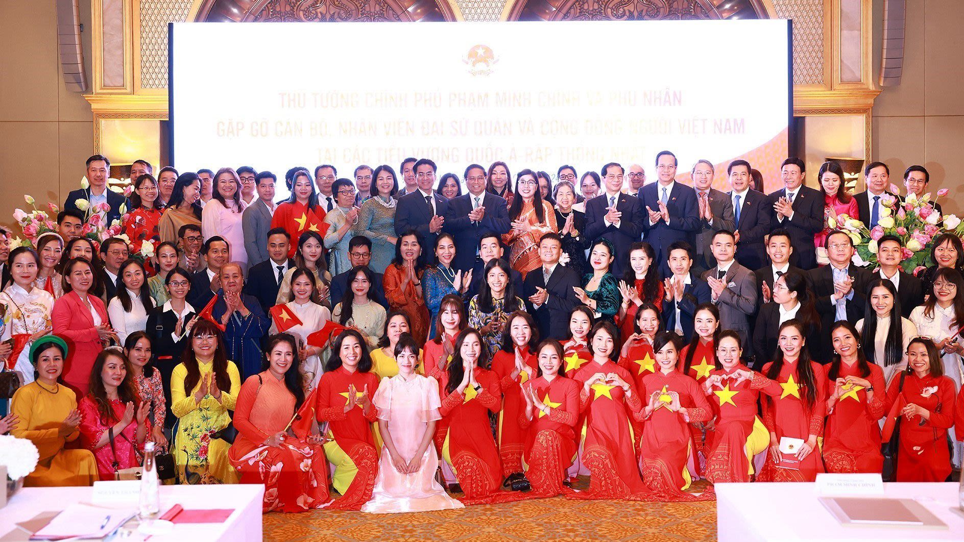 Премьер-министр Фам Минь Тьинь с супругой на встрече с представителями вьетнамской общины в ОАЭ. Фото: ВИА