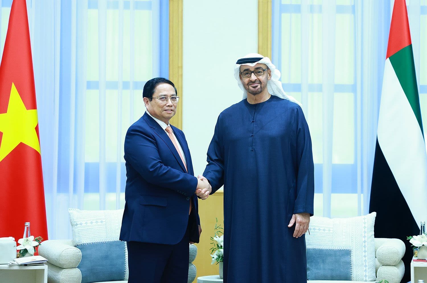 Премьер-министр Вьетнама Фам Минь Тьинь и Президент ОАЭ шейх Мохамед бен Заид Аль Нахайян договорились о 6 приоритетных областях сотрудничества, включая срочную разработку программ действий для немедленной реализации рамок отношений всеобъемлющего партнерства; продвижение сотрудничества в области инноваций, зеленой трансформации, цифровой трансформации и экономики замкнутого цикла; создание прорыва в двустороннем экономическом, торговом и инвестиционном сотрудничестве; сотрудничество в целях развития индустрии Халяль и открытие рынка для вьетнамской халяльной продукции; укрепление сотрудничества в сфере труда, культуры, туризма, спорта, народной дипломатии и тесную координацию действий, консультации и взаимную поддержку по региональным и мировым вопросам на многосторонних форумах.