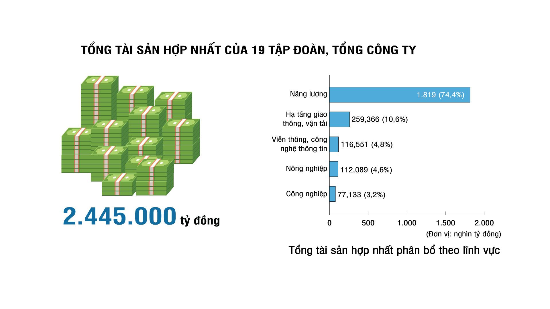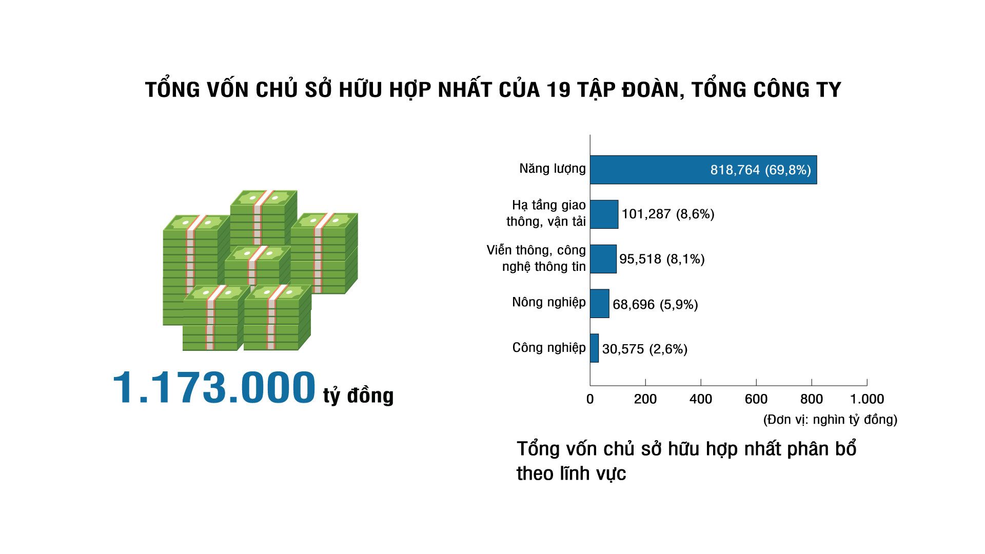 Tổng vốn chủ sở hữu và tổng tài sản hợp nhất của 19 tập đoàn, tổng công ty tính đến ngày 1/1/2023