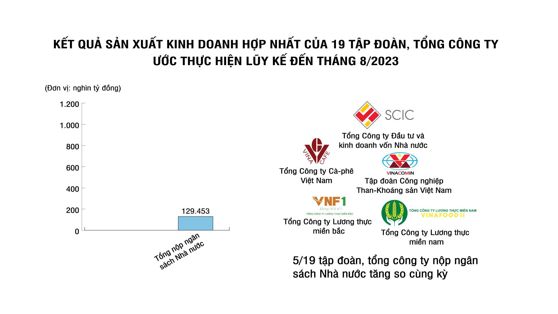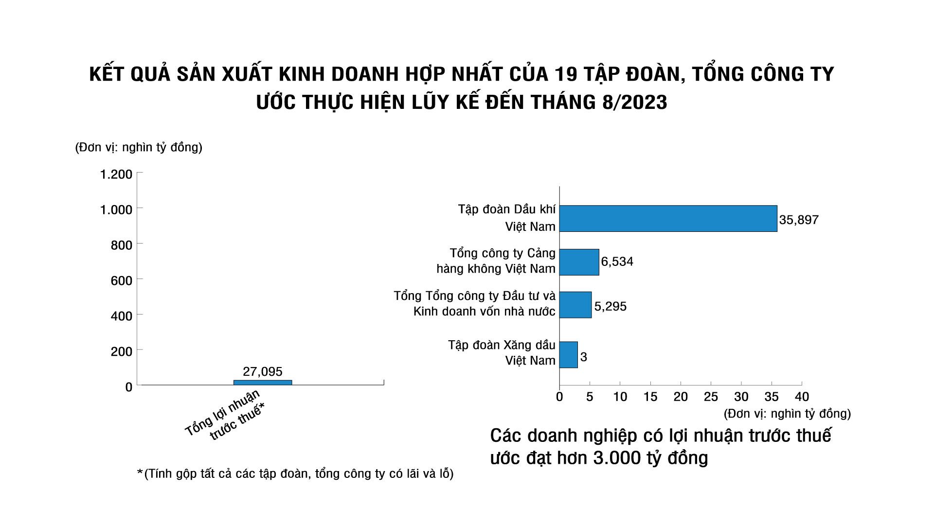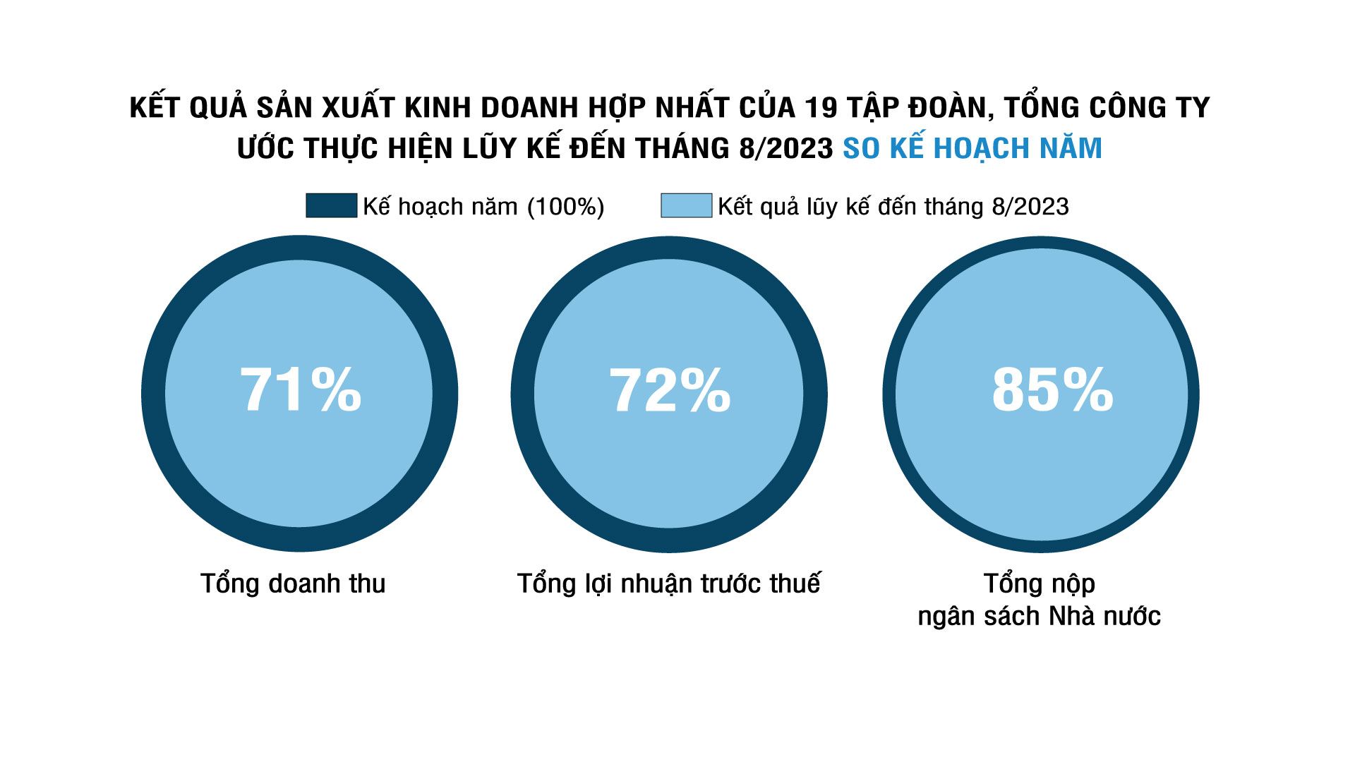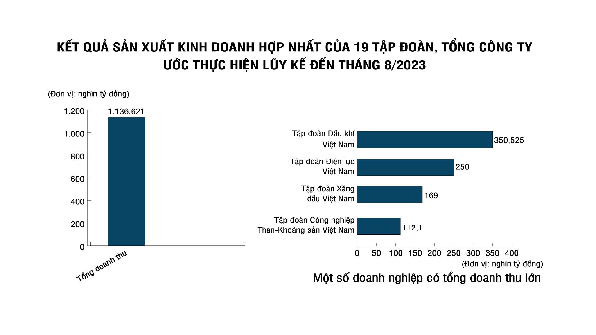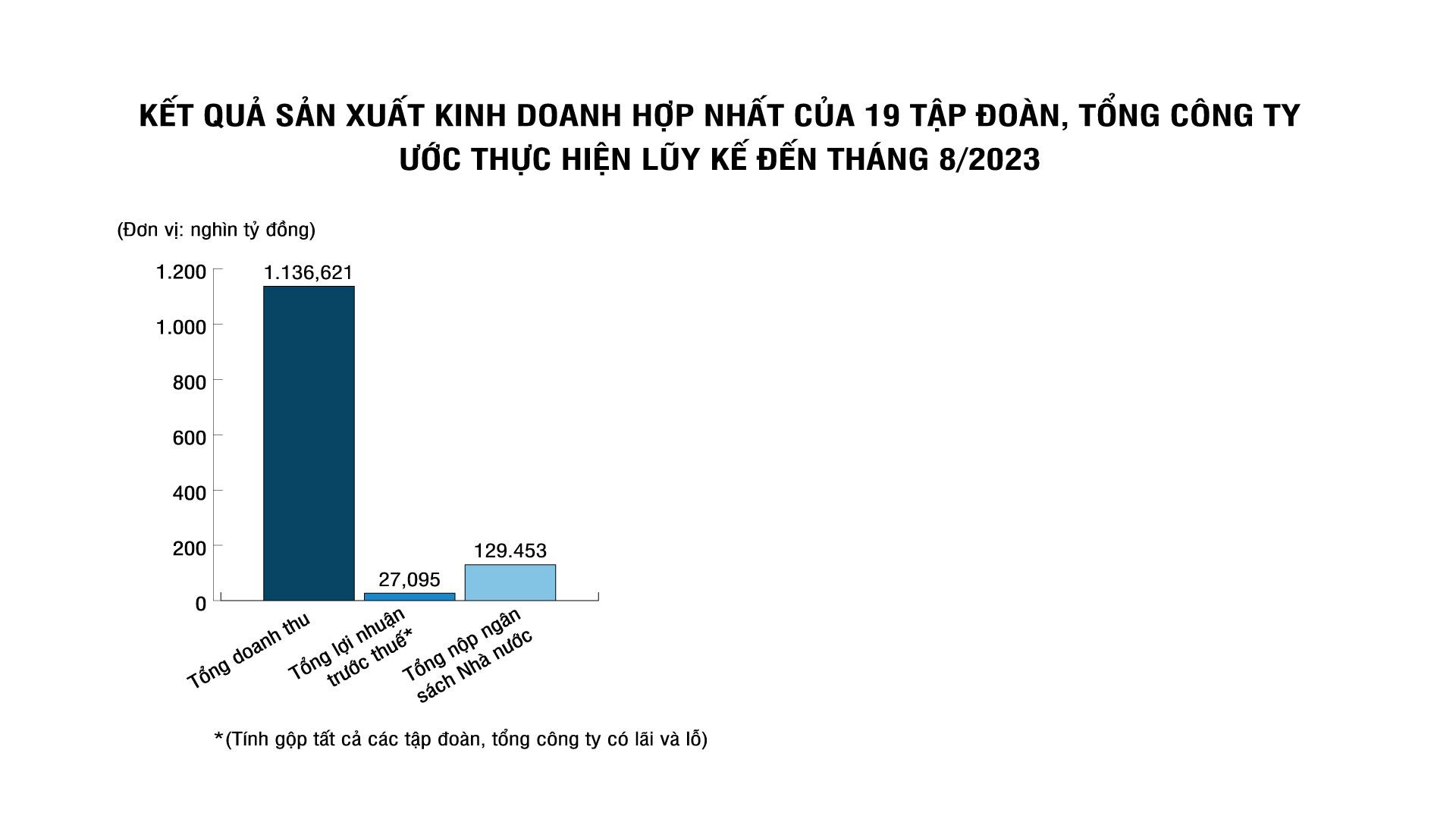 Kết quả kinh doanh của 19 tập đoàn, tổng công ty nhà nước 8 tháng đầu năm 2023