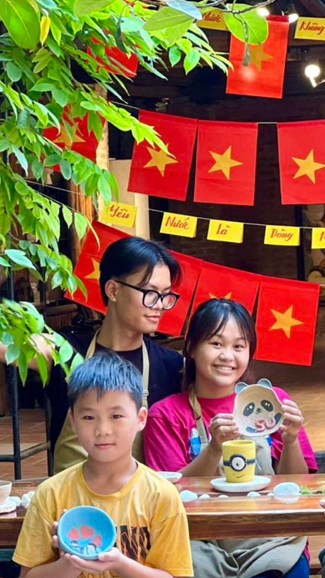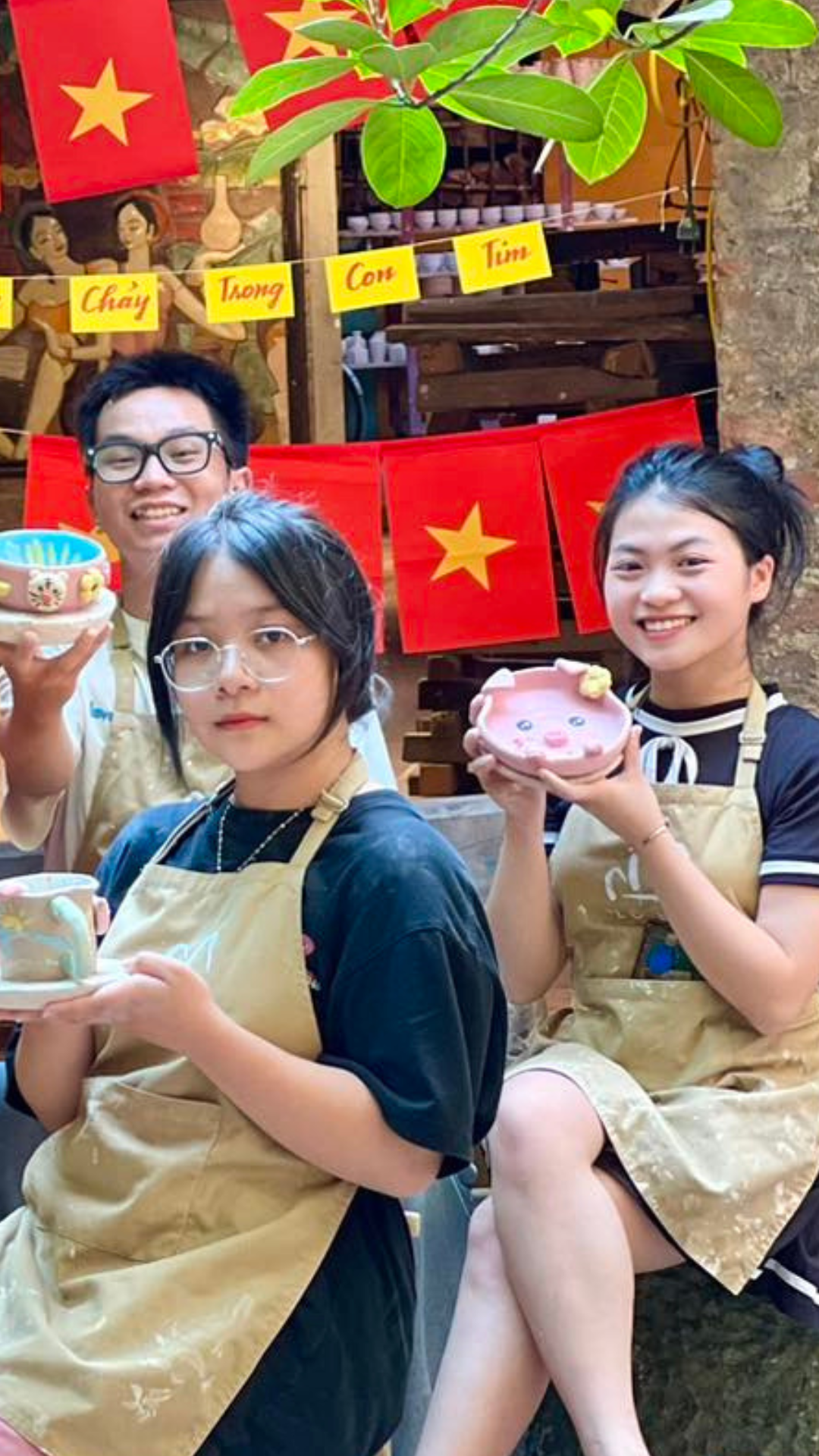 Khách du lịch trẻ tuổi thích thú với những sản phẩm gốm sinh động khi đến với làng cổ Bát Tràng.