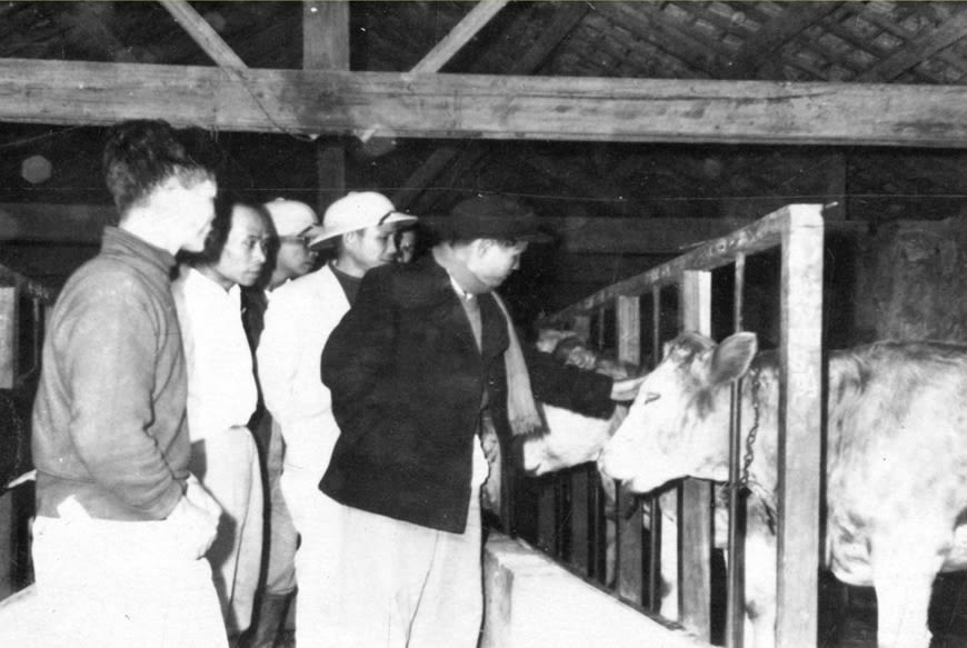 Đại tướng Nguyễn Chí Thanh, Trưởng ban Công tác nông thôn Trung ương thăm trại chăn nuôi bò sữa. Ảnh tư liệu