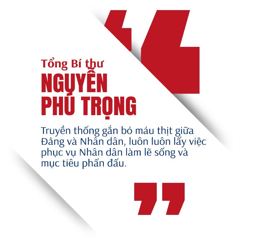 Trong số những truyền thống được đúc kết, Tổng Bí thư Nguyễn Phú Trọng đặc biệt nhấn mạnh truyền thống: Gắn bó máu thịt giữa Đảng và Nhân dân, luôn luôn lấy việc phục vụ Nhân dân làm lẽ sống và mục tiêu phấn đấu. Có thể nói, sự tổng kết của Tổng Bí thư Nguyễn Phú Trọng là sự khái quát đầy đủ nhất, sâu sắc nhất về truyền thống và lịch sử của Đảng ta.