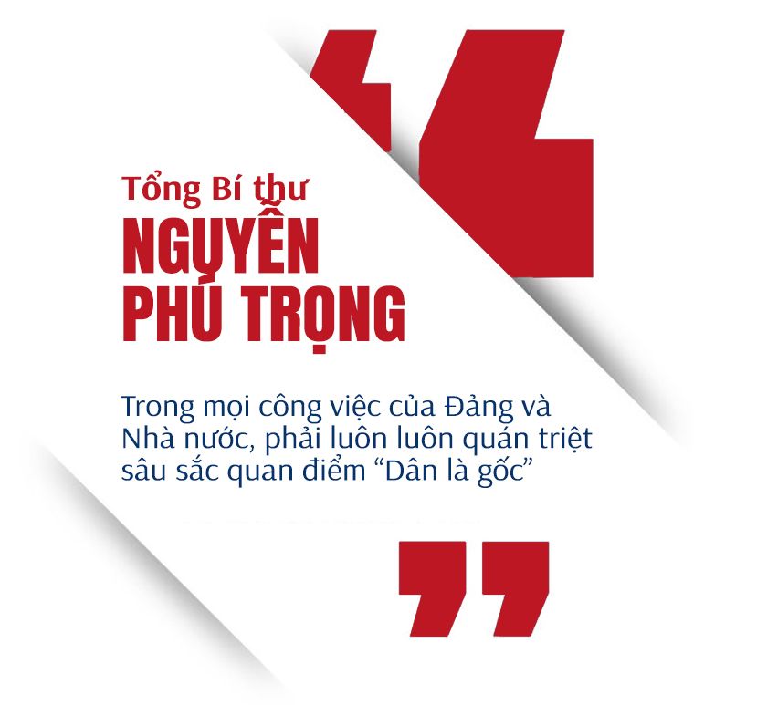 Tổng Bí thư nhấn mạnh: Trong mọi công việc của Đảng và Nhà nước, phải luôn luôn quán triệt sâu sắc quan điểm “Dân là gốc”; thật sự tin tưởng, tôn trọng và phát huy quyền làm chủ của Nhân dân, kiên trì thực hiện phương châm “Dân biết, dân bàn, dân làm, dân kiểm tra, dân giám sát, dân thụ hưởng”.