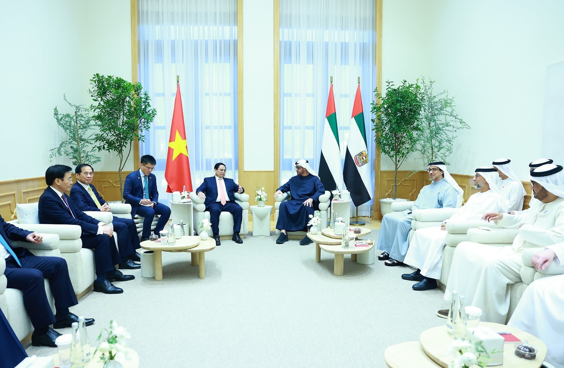 El dirigente vietnamita y el presidente de los EAU, Mohamed bin Zayed Al Nahyan, concertaron seis áreas prioritarias de cooperación, entre estas la apremiante elaboración de programas de acción para desplegar inmediatamente el marco de la asociación integral y el fomento de los lazos en materia de innovación, transición verde, transformación digital y economía circular. También acordaron avanzar en la cooperación económica, comercial y de inversión; colaborar para desarrollar la industria halal y abrir el mercado a los productos vietnamitas de este renglón; fortalecer las relaciones en asuntos laborales, cultura, turismo, sector deportivo e intercambios pueblo a pueblo, y coordinarse estrechamente, consultarse y prestarse apoyo mutuo en cuestiones regionales y mundiales en foros multilaterales.